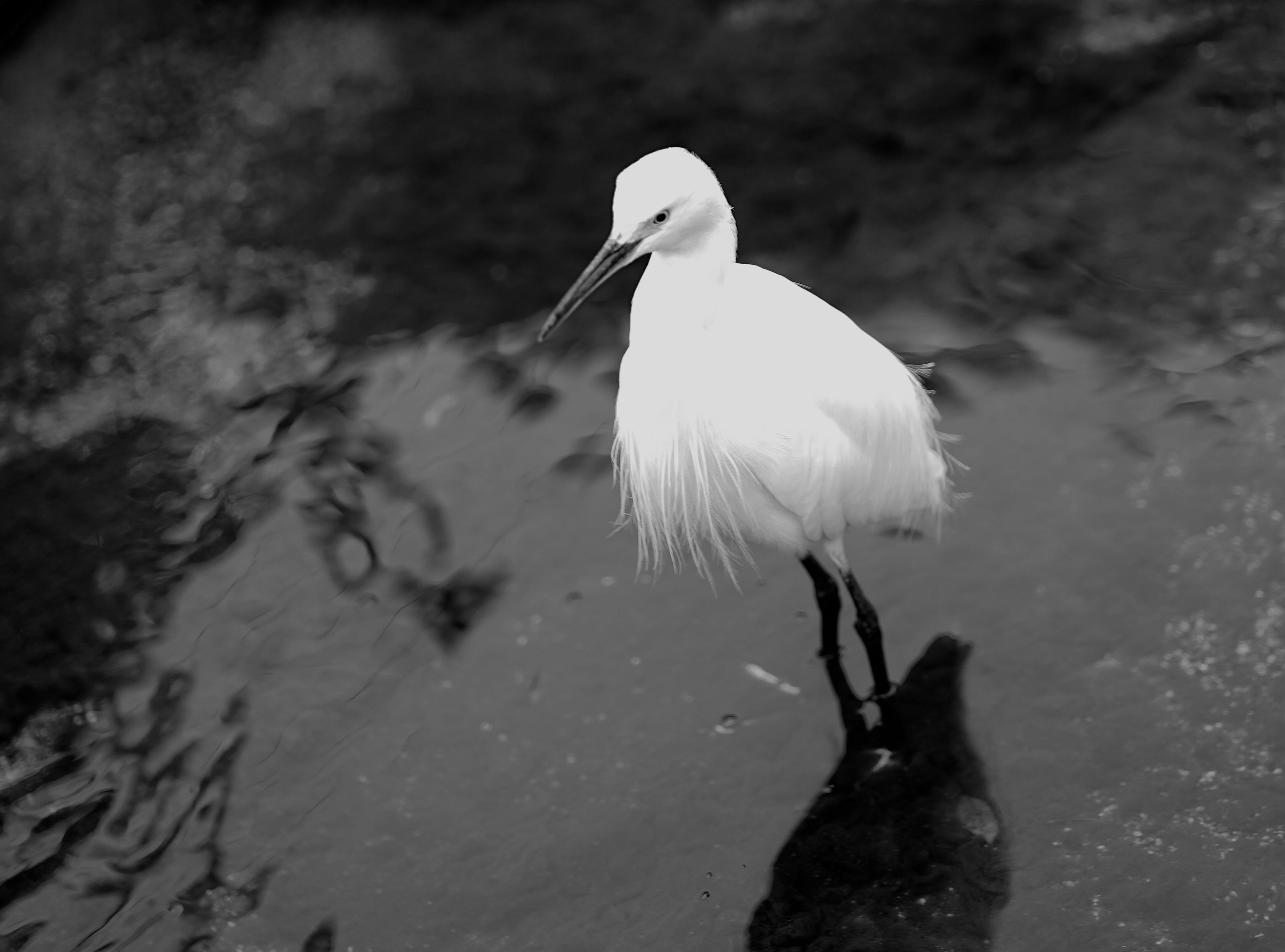 出勤途中で出会ったコサギさん ゆっくり、ゆっくり、優雅に歩いていました トリミングしています