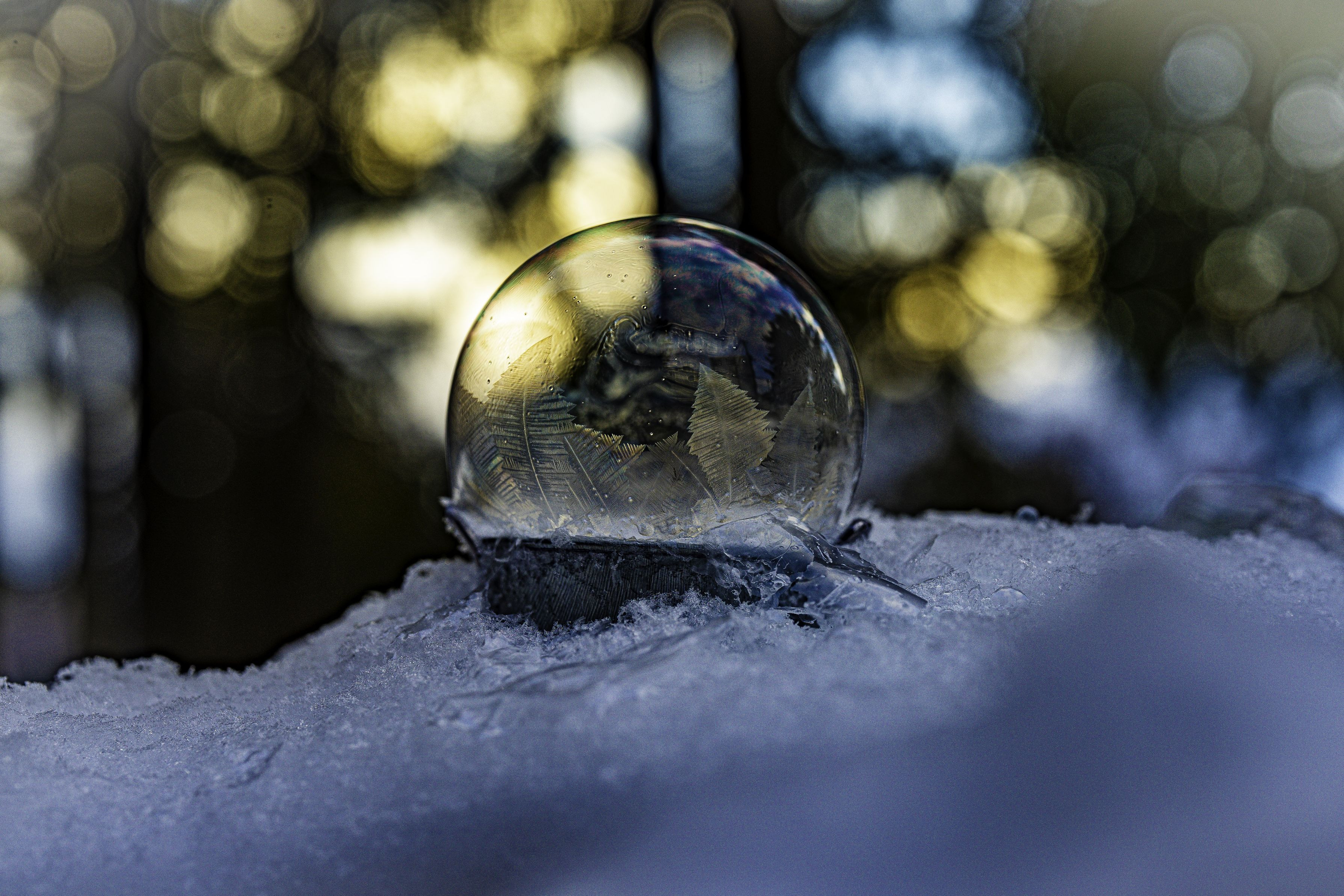 気温マイナス12度 寒い朝のシャボン玉遊び