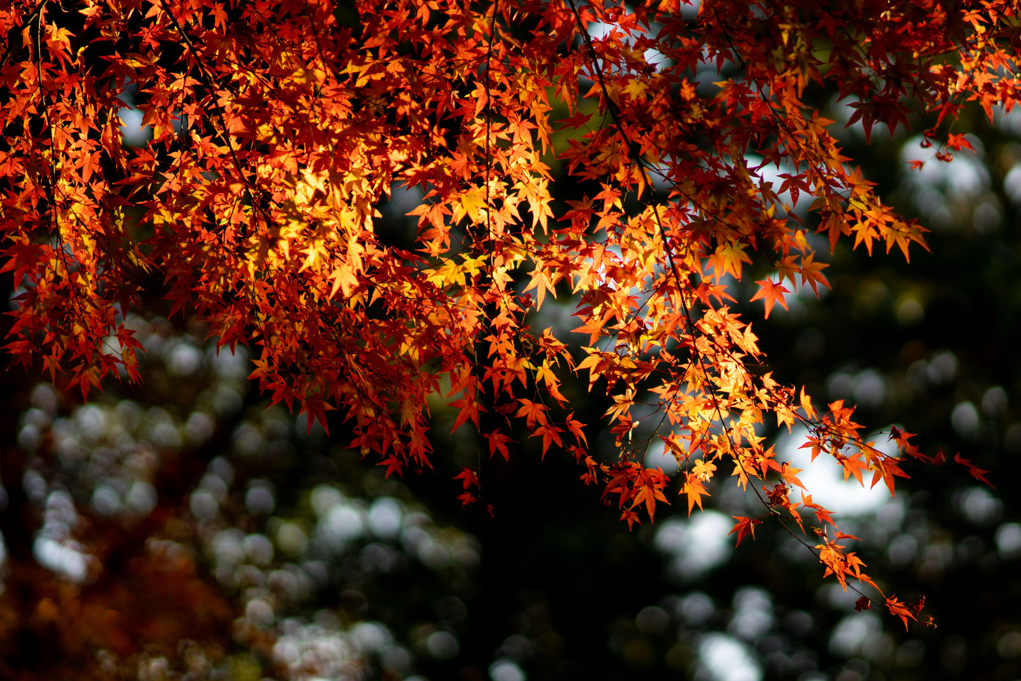 夕暮れ時の紅葉に夕日が当たり黄金色に輝いてました。