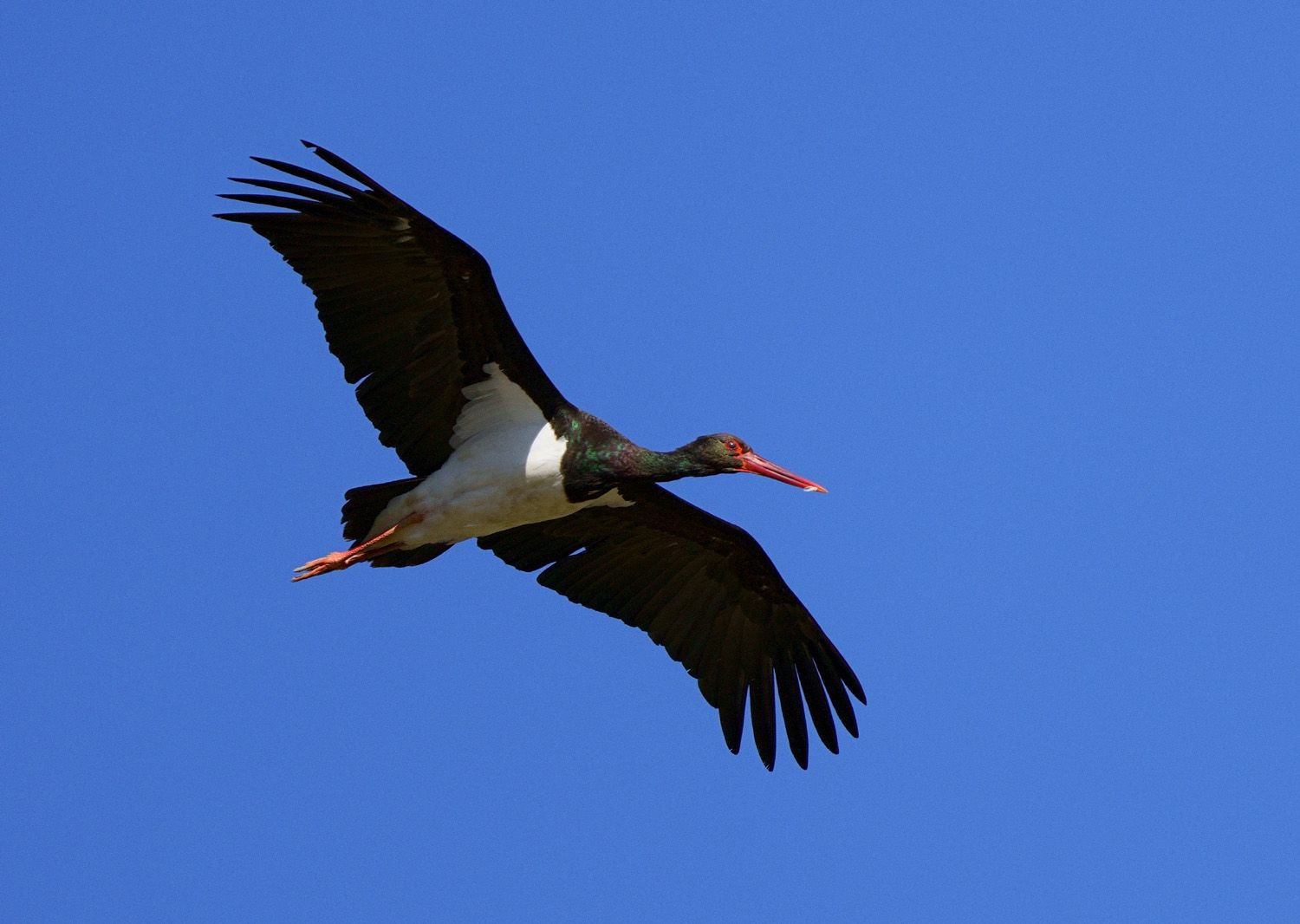 黒い羽毛が陽光を浴び極彩色に発色して綺麗