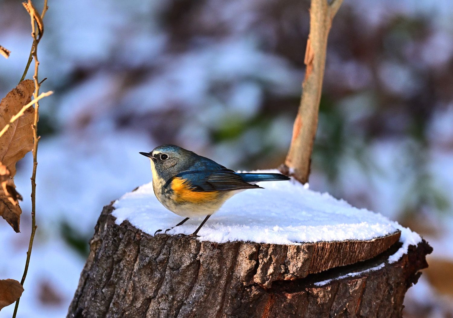 強烈な寒波が来るとの予報、夜のうちに雪が薄らと、雪ルリビタキ♂が鳥撮り出来そうでお出かけ、鳥撮り出来ました(▰╹◡╹▰)嬉しい
