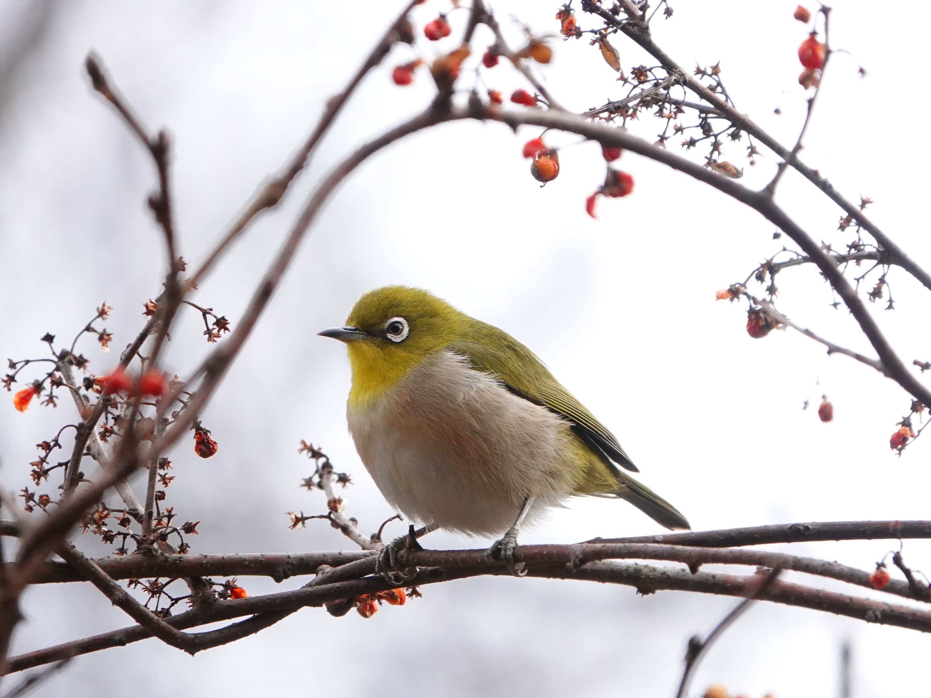まるでセットのようなアーチ状の枝ぶりの真ん中でポーズをとっているように見えました。 #鳥#メジロ#