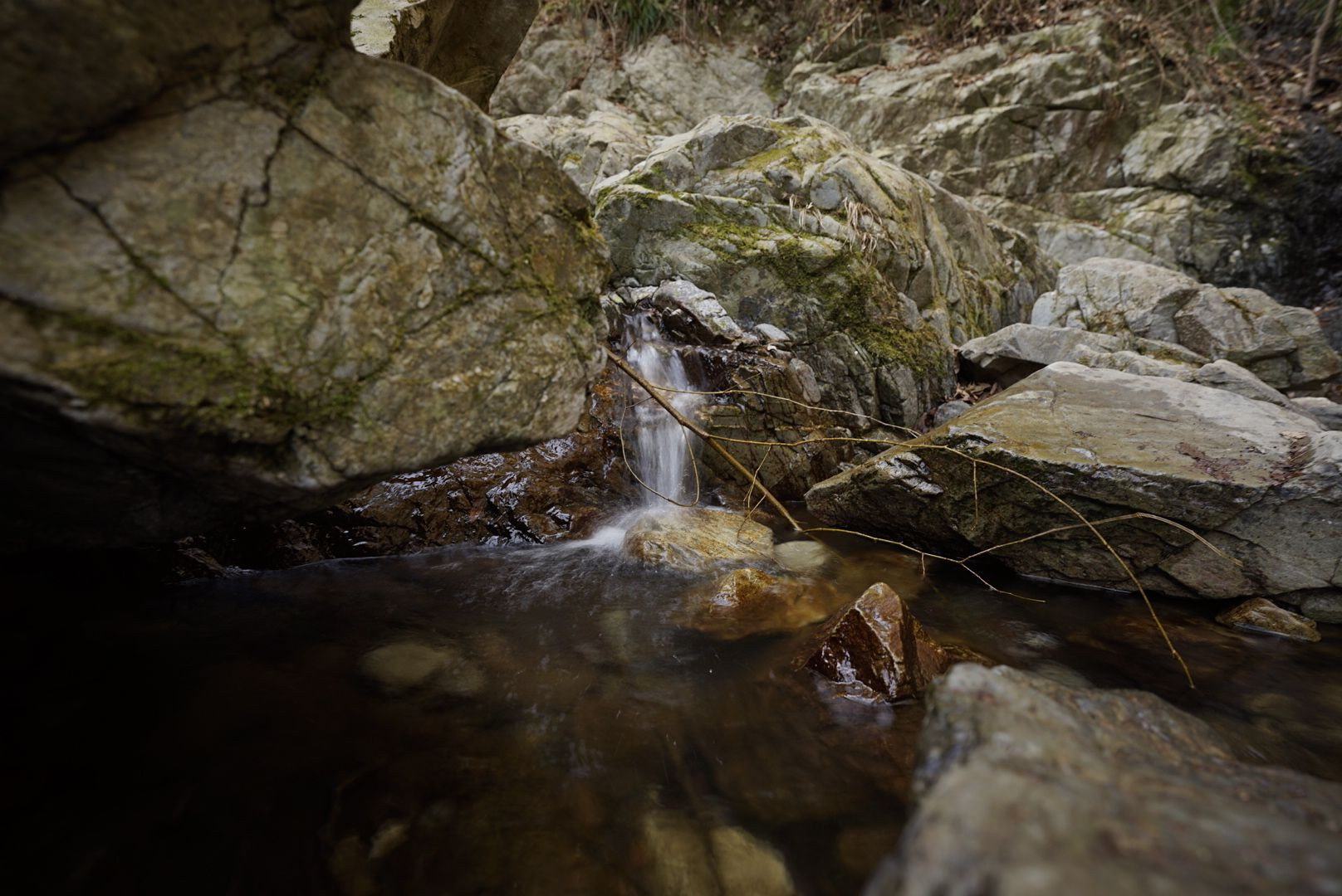 普段歩いてる岩と岩の間には自分たちが気づいていない滝があるところを撮りました。