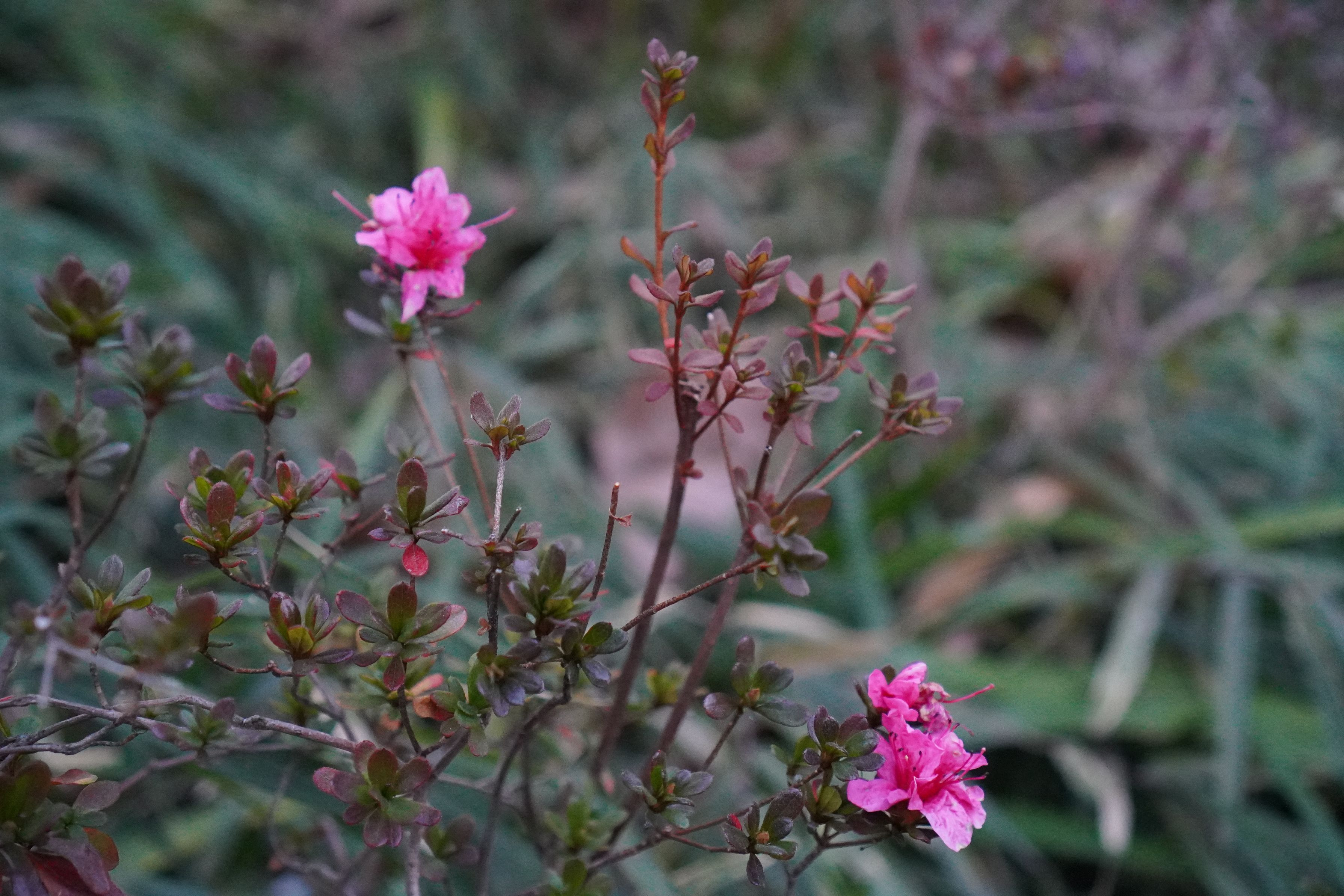 1/29(日)文京区須藤公園にて撮影。ツツジの花を中心に、単焦点レンズではありますが、ぼかしを意識して撮影しました。
