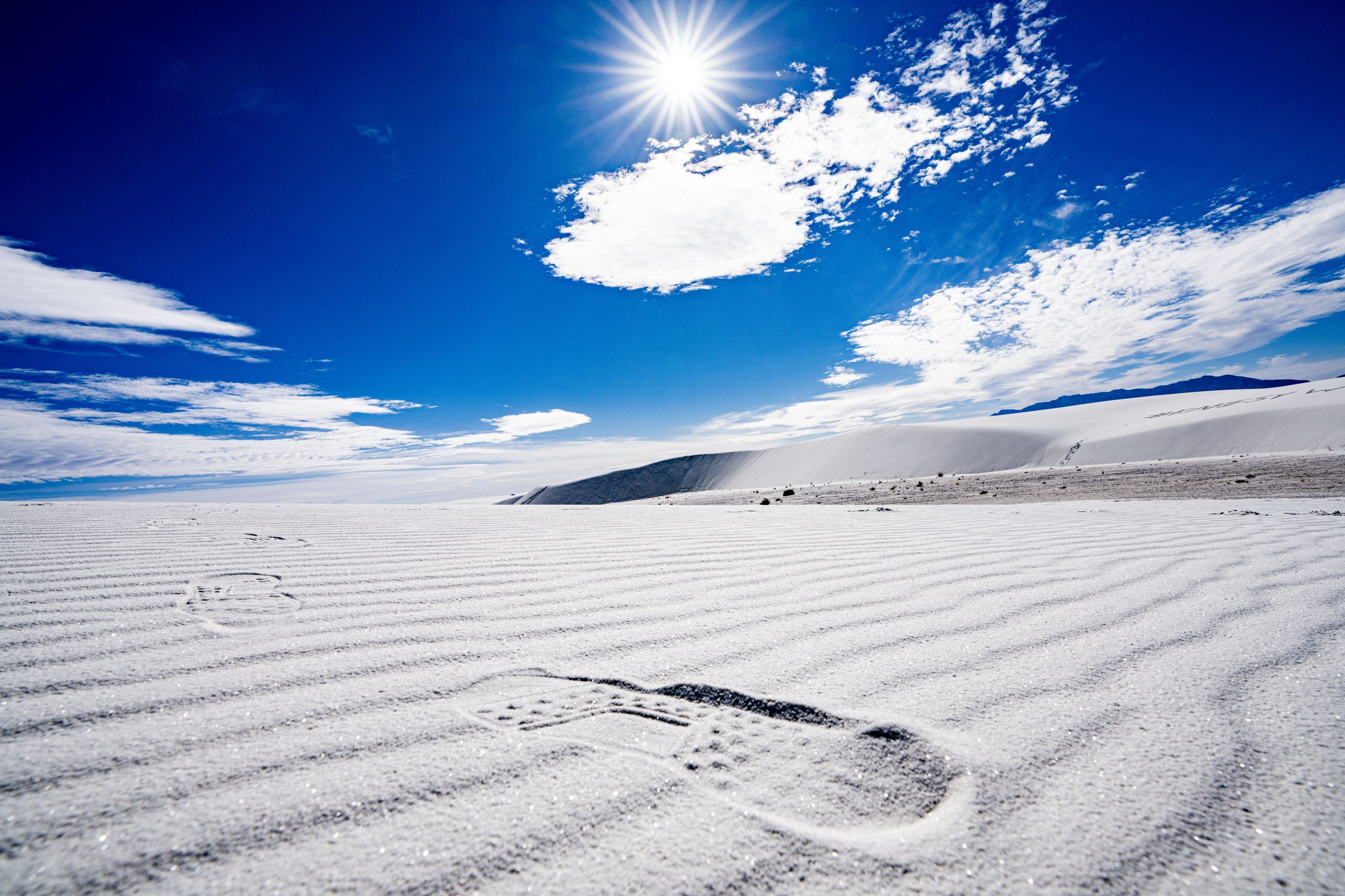 白い砂漠の靴跡が別の惑星で歩んでいるように見えて撮影📷✨