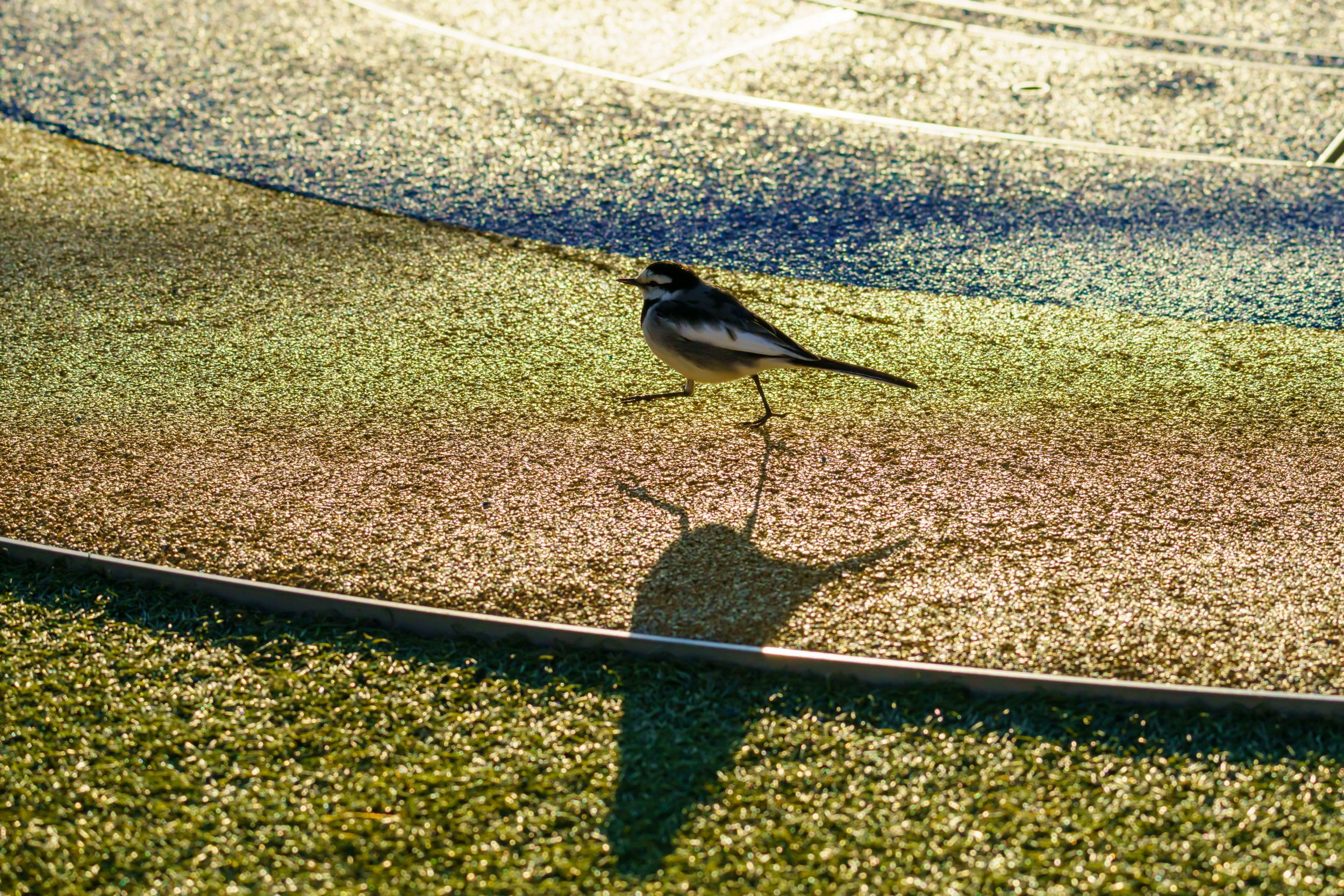 伊丹空港 展望デッキで 優雅にあるいていた ハクセキレイ