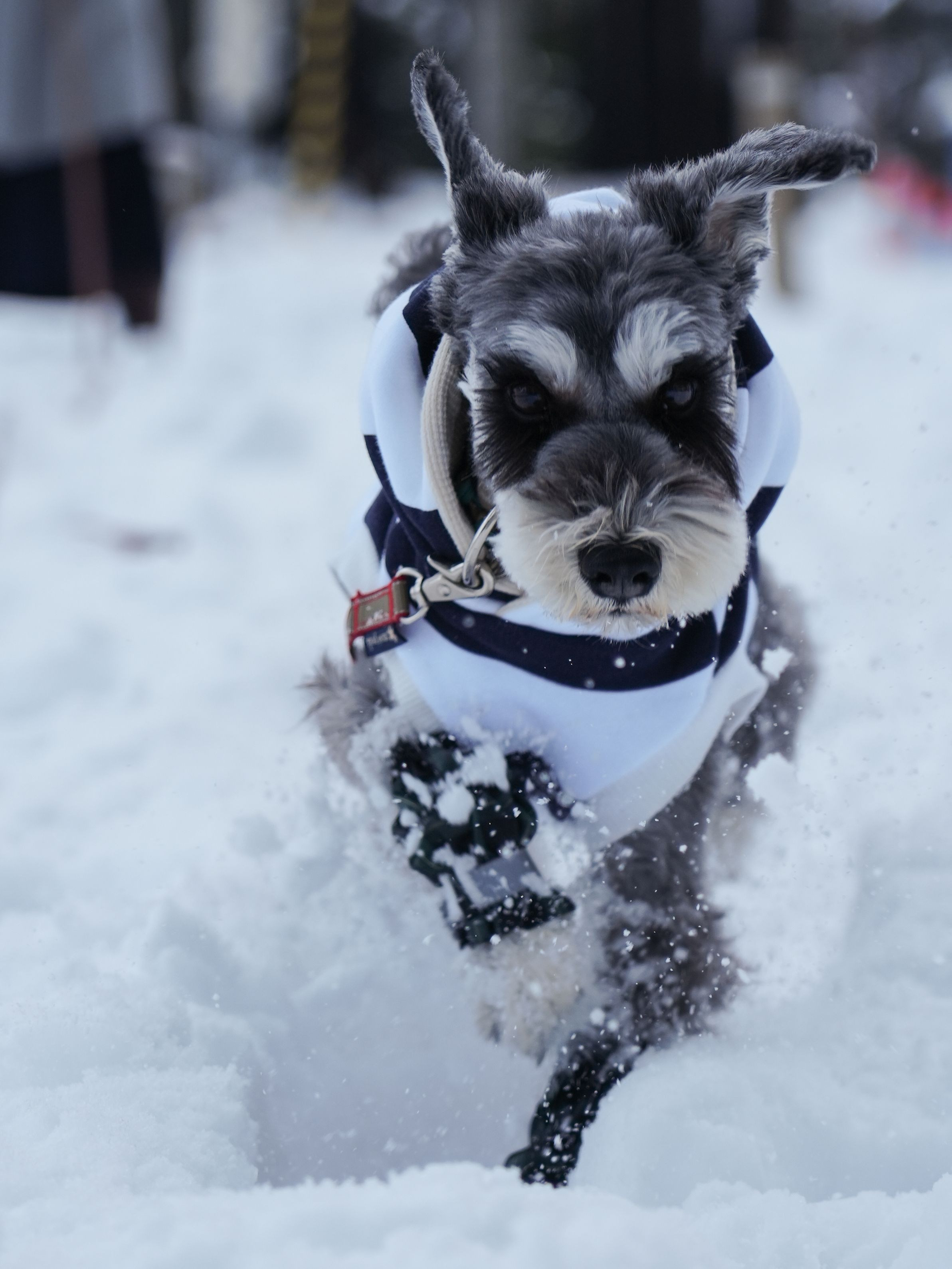 雪道で散歩中にダッシュしているところを撮りました。雪道得意じゃなさそうですが、おやつに向かって猛ダッシュしてくれました。