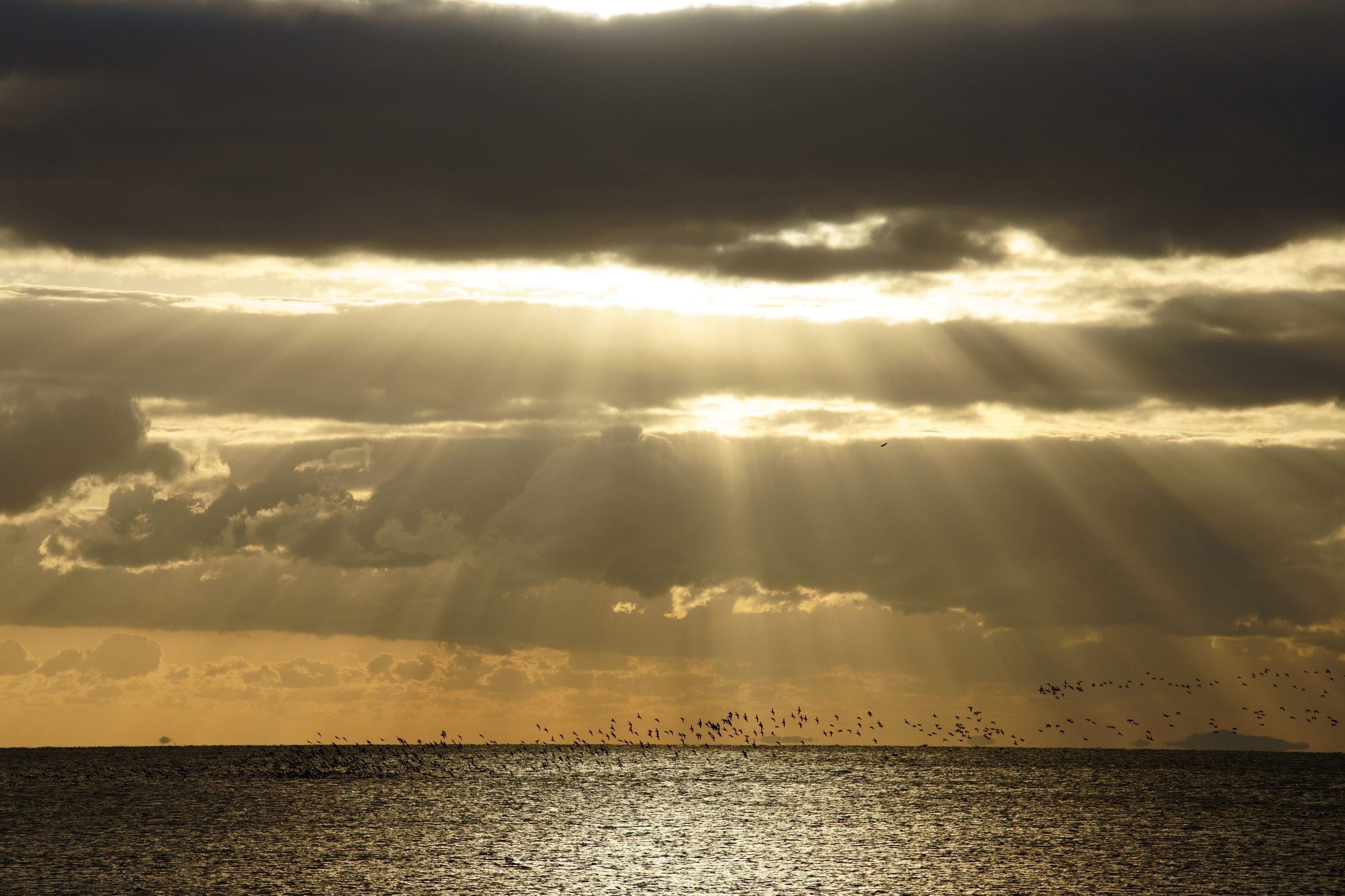 製品情報>My Sony>αcafe>天使の梯子と鳥の群れ(イーサさん)