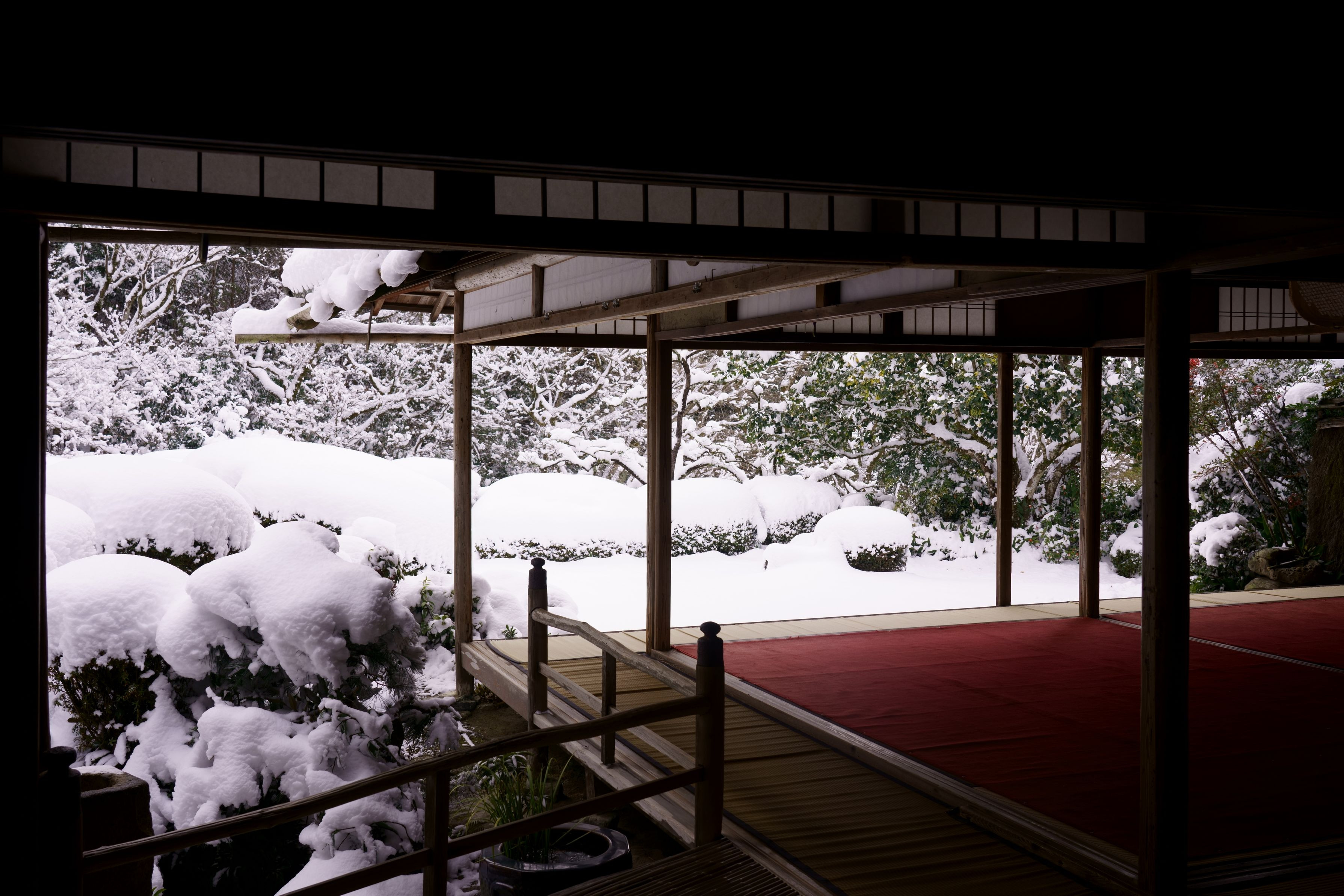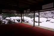 薄日がさす嘯月楼から庭を眺める 公開寺院に誰もいない光景は寂し過ぎるので、後ろ姿を拝借しました