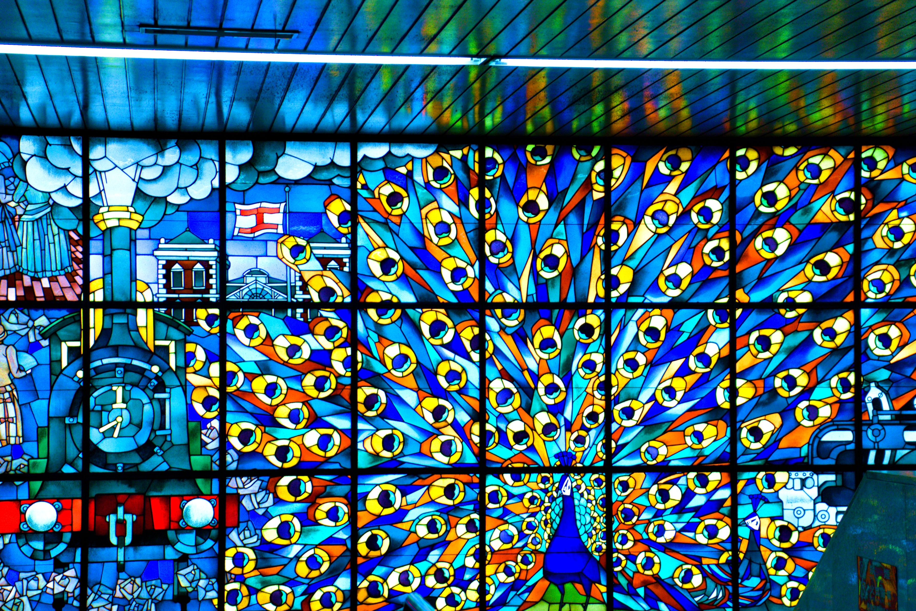 新橋駅のパブリックアートである「くじゃく窓」の世界観に引き込まれ、シャッターを切った。 ハイコントラストながらも精細な描写でこの世界観を共有したい。