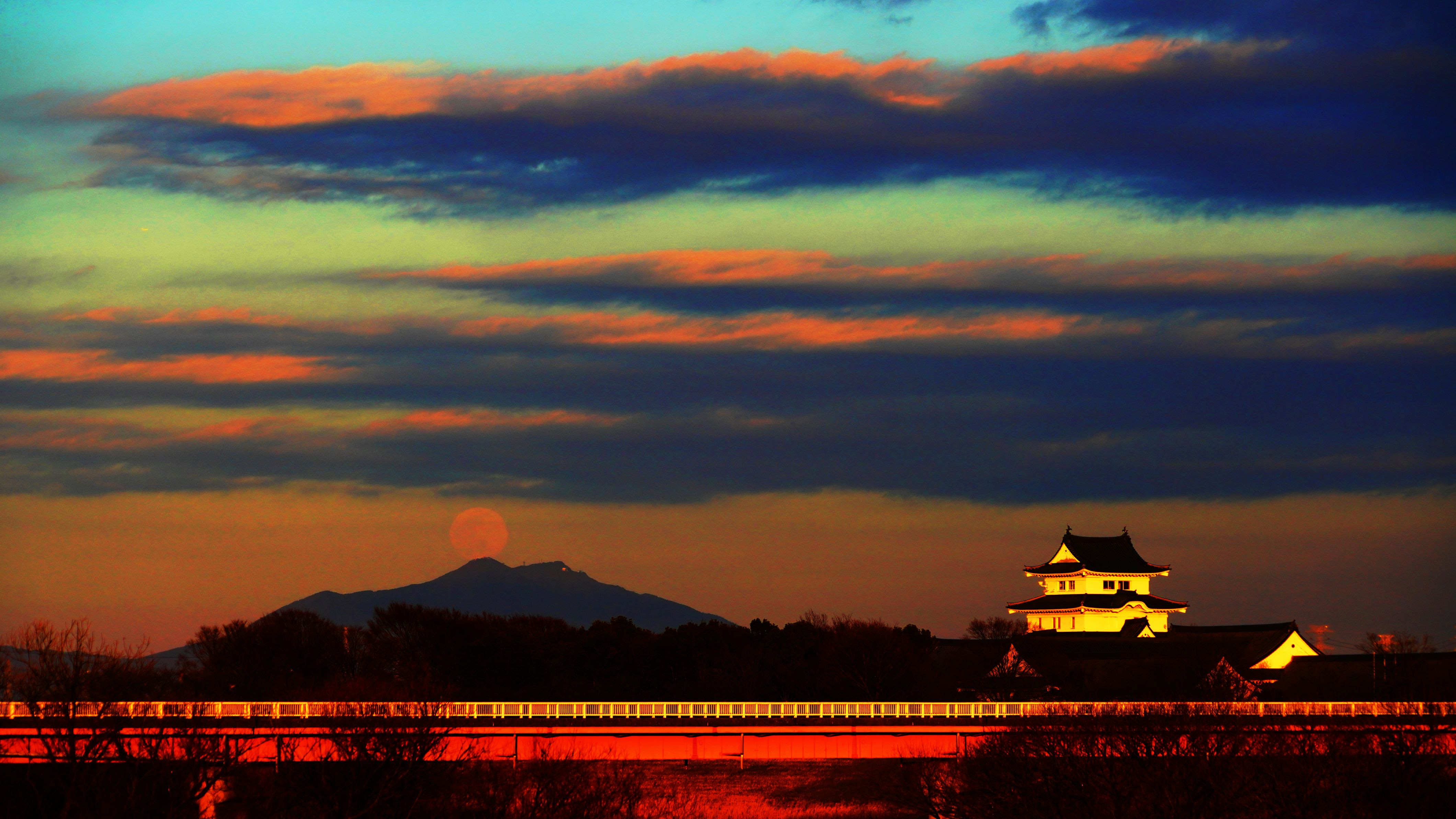 関宿に月を撮りに、筑波山頂からの月の出を。動画も投稿しています