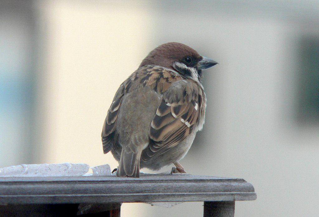 雪で餌を探しにバードテーブルに