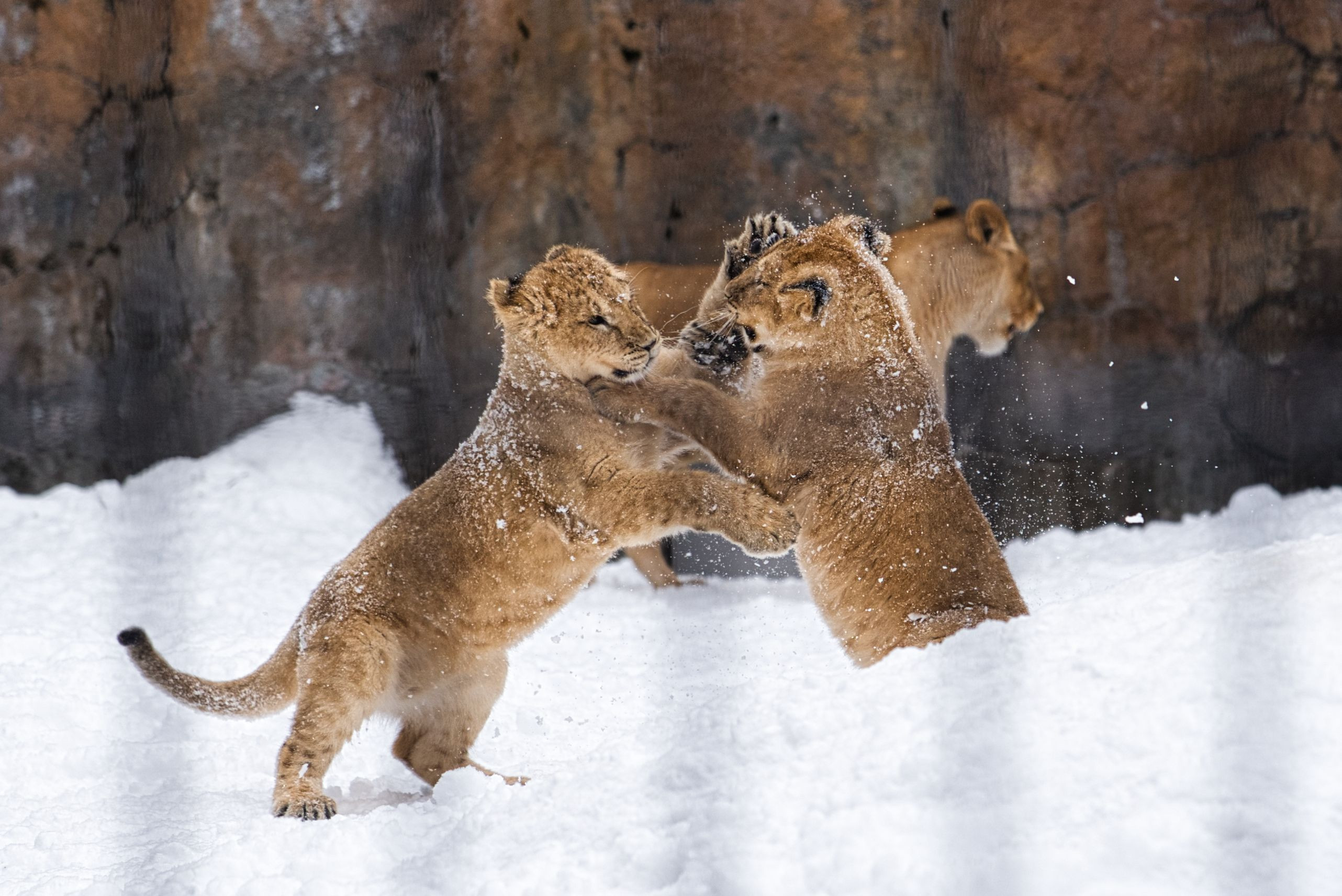 雪が積もっているのに、はしゃぐ子供。
