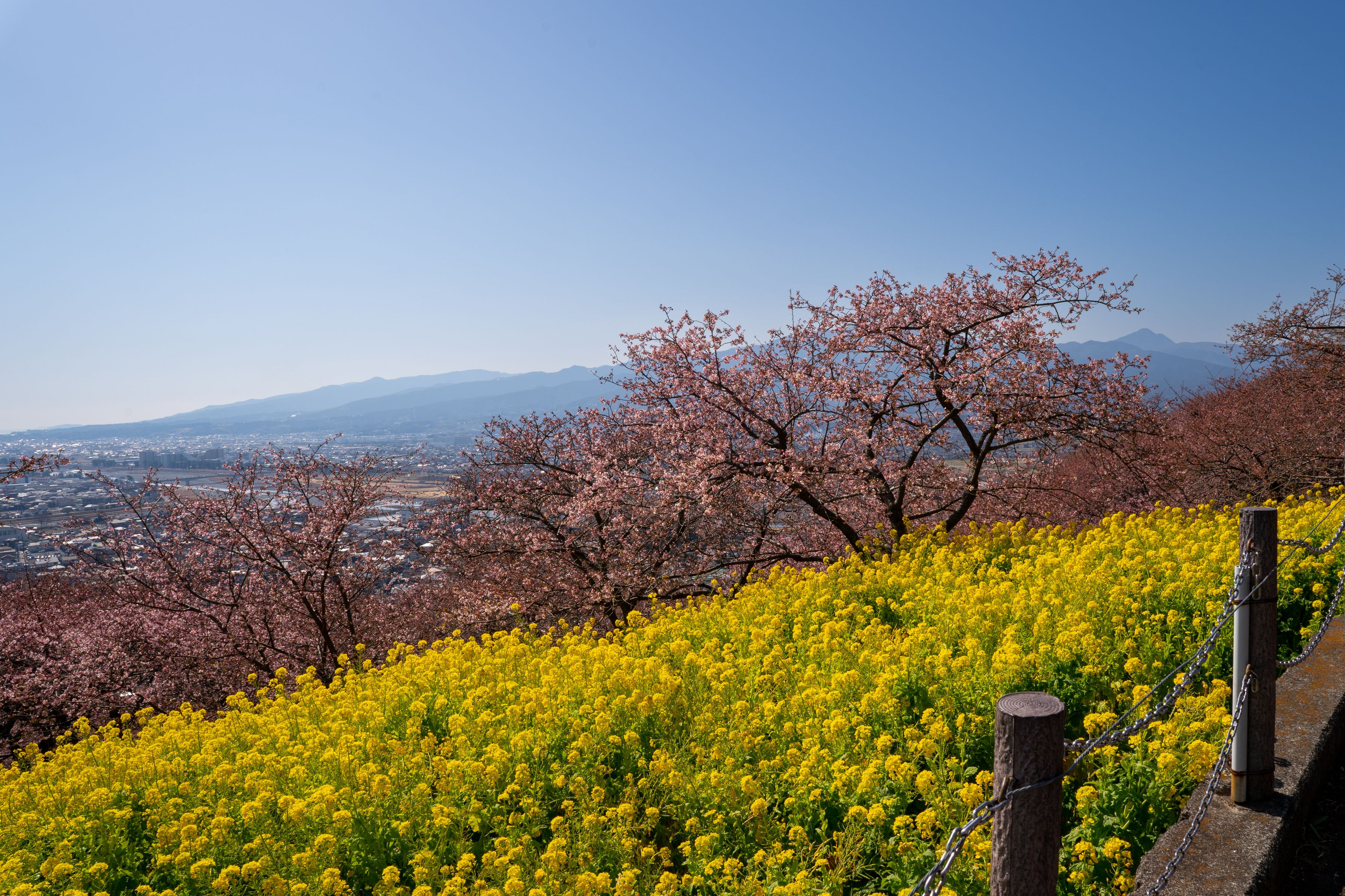 河津桜と菜の花を広角側で撮りました 広角も望遠もとても便利なレンズですね