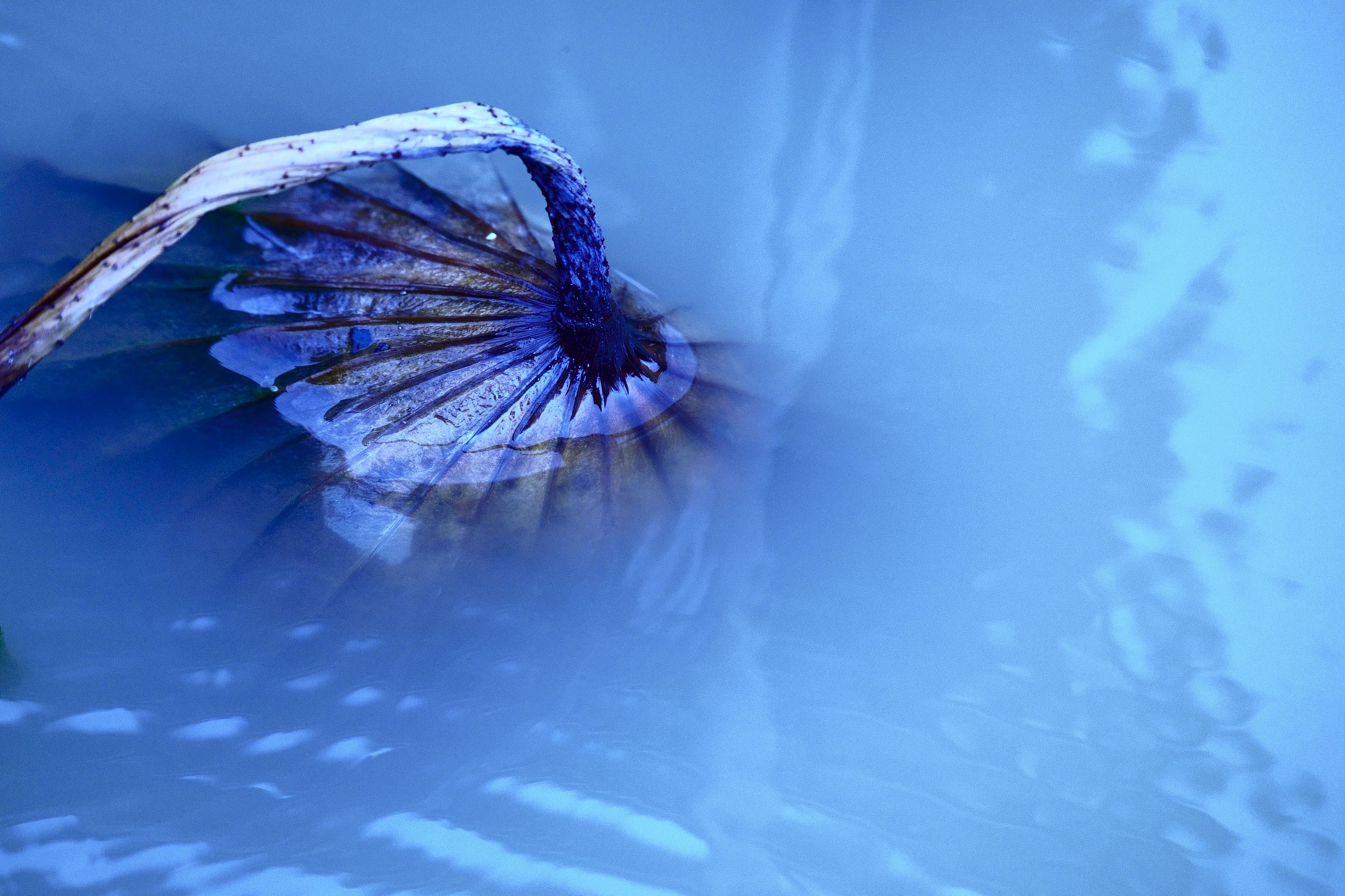 朽ち落ちて重たい頭を冷たい水面に沈めても、根っこはまだ残っているのだろうか。 季節が廻りくればまた、華やかに復活の色を誇らしげに見せてくれるのだろうか。 水面すれすれの首筋は魚の鱗のように煌めいていた。