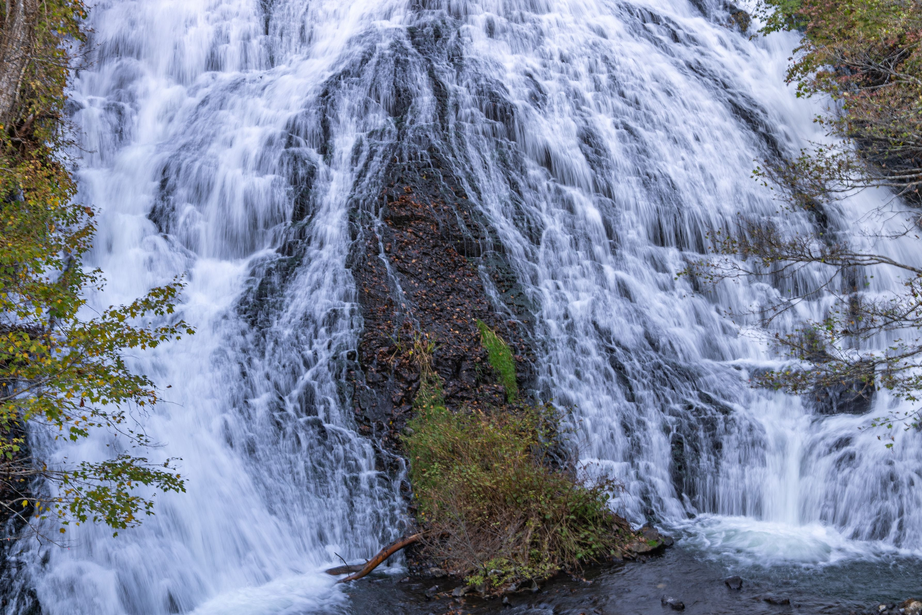 奥日光、「湯ノ湖」の南端にある「湯滝」。 70mの高さから110mの岩肌を伝って流れ落ちる湯滝の表情を撮る。