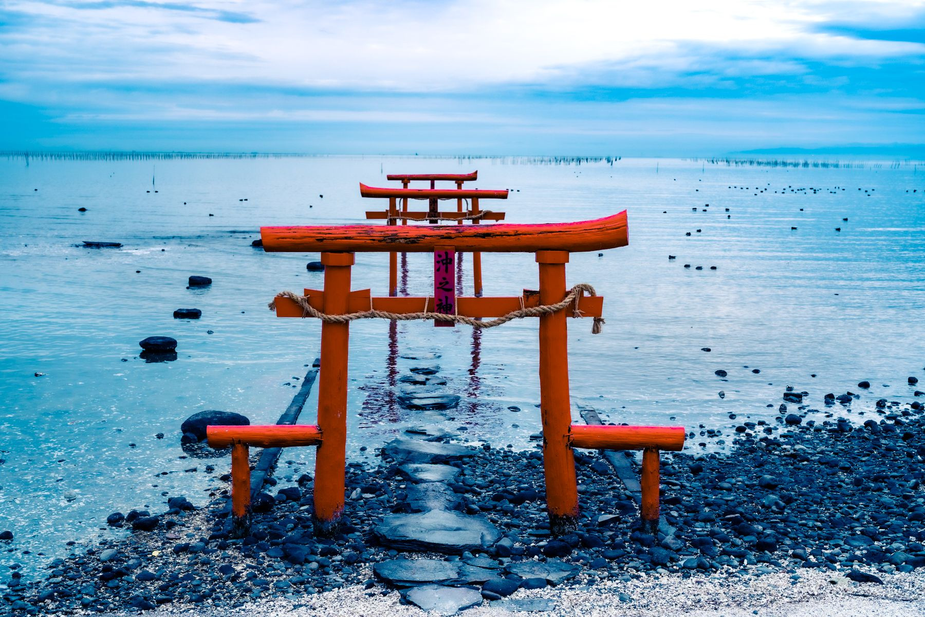 佐賀県太良町大魚神社の海中鳥居、潮が満ちかけたところを狙ってみました。