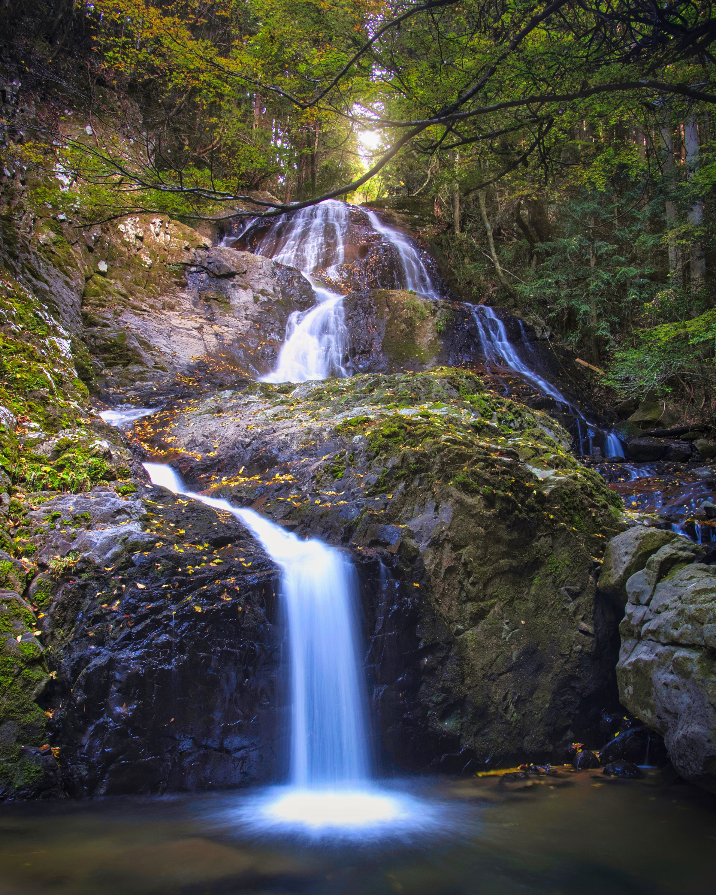 愛媛県久万高原町の遅越の滝です。 2021年に行ったんですが水量と紅葉が今一つ足りない気がしてお蔵入りしていた作品を現像してみました。 昨年末の寒波で雪が降った時に撮影に行きたかったなぁ。でもノーマルタイヤで冬の装備がない私にはどうすることもできず・・・もう春。