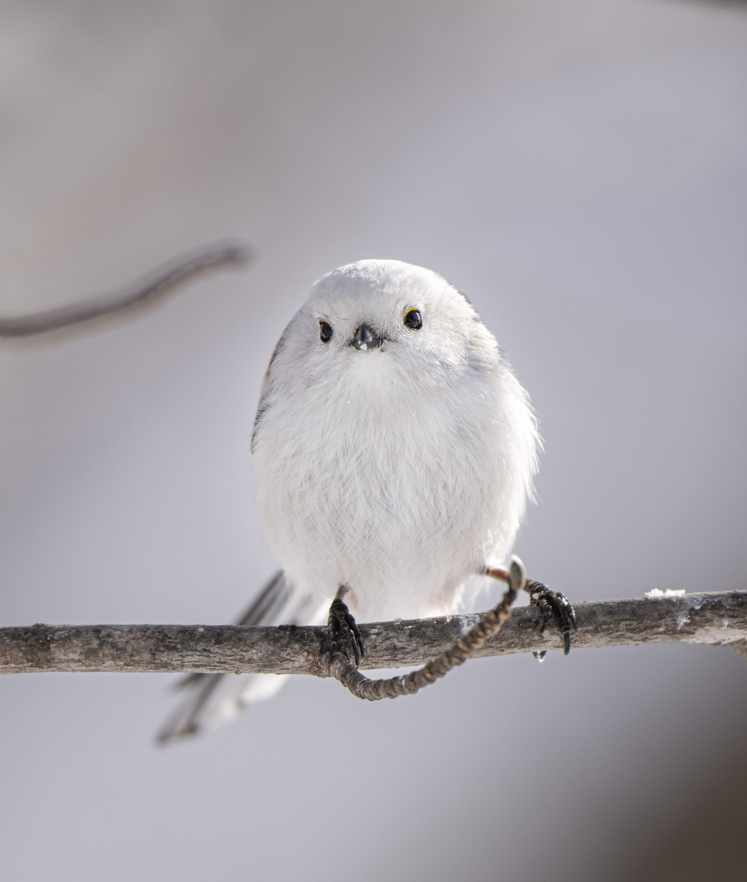 雪が降ったり止んだり、ふとした晴れ間にシマエナガが妖精のごとく目の前に現れました。