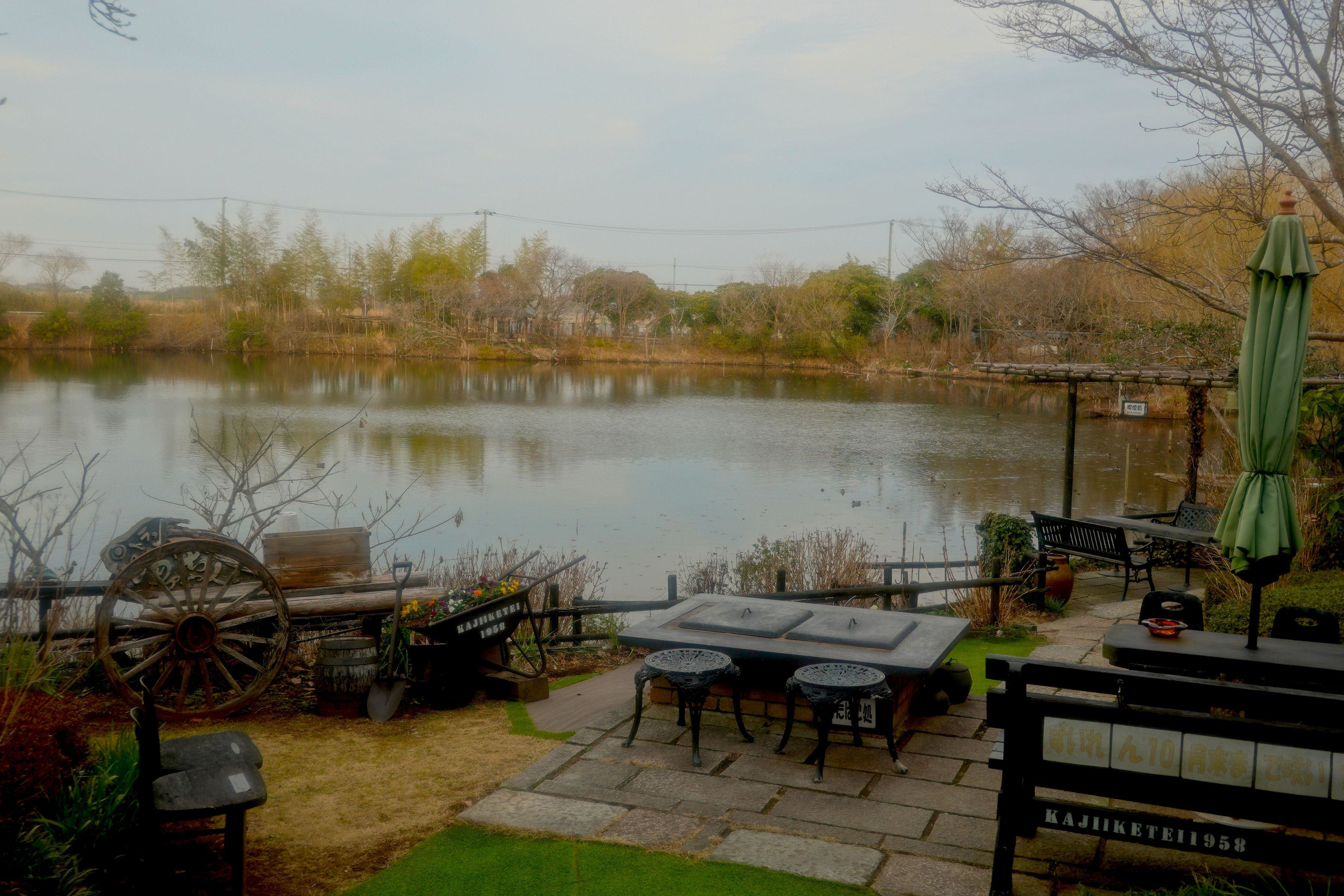 我孫子市のレストラン内から撮影。春なるとカラフルな景色が楽しめそうです。