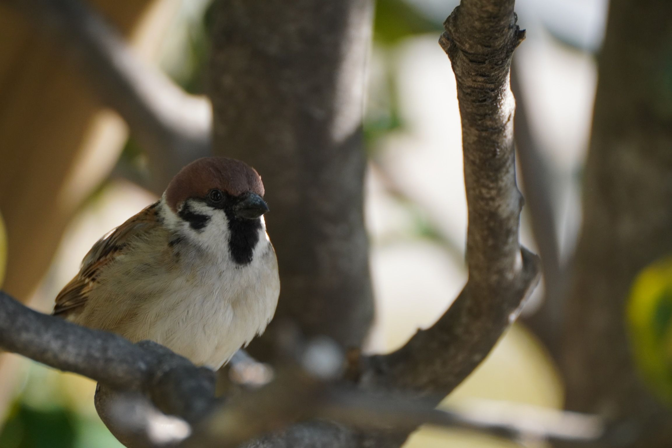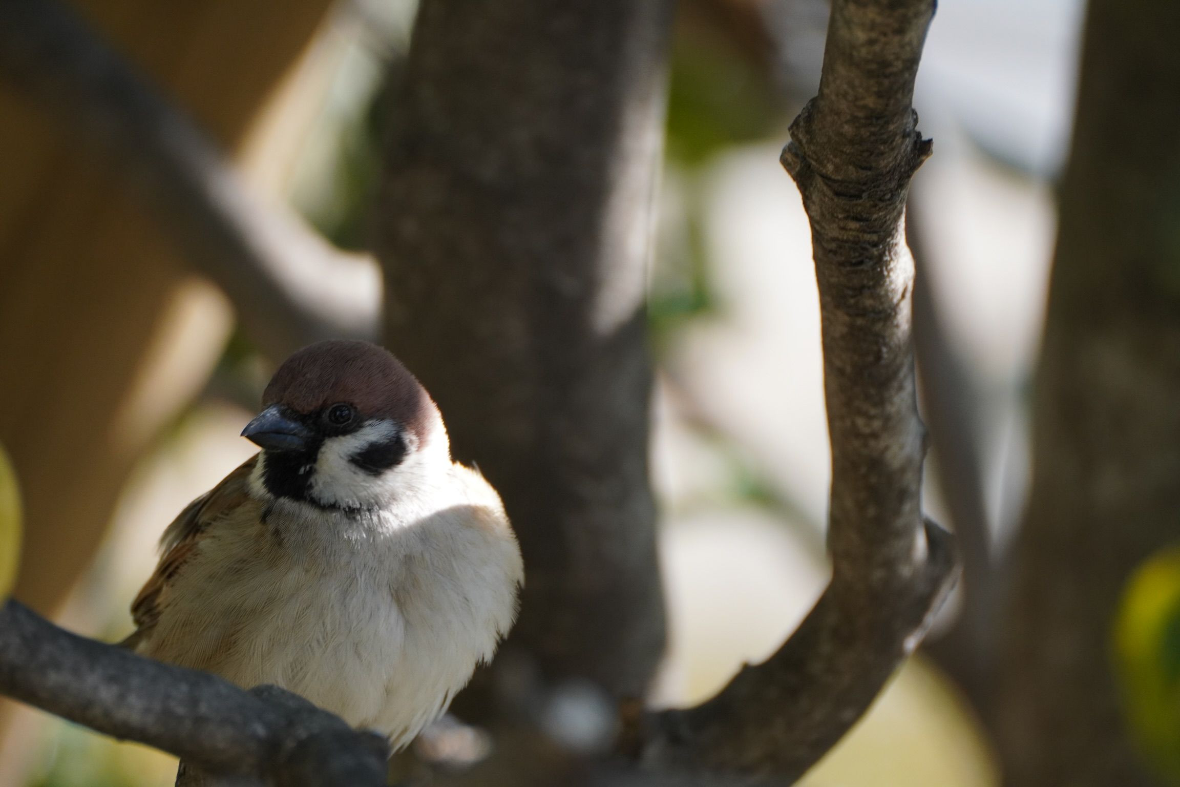お散歩中に見かけたスズメさん。 ビル横の木の枝でじーっと佇んでいらっしゃいました。 小さな黒い瞳が…なんとも可愛くて 癒されますねぇ(^^) #スズメ#