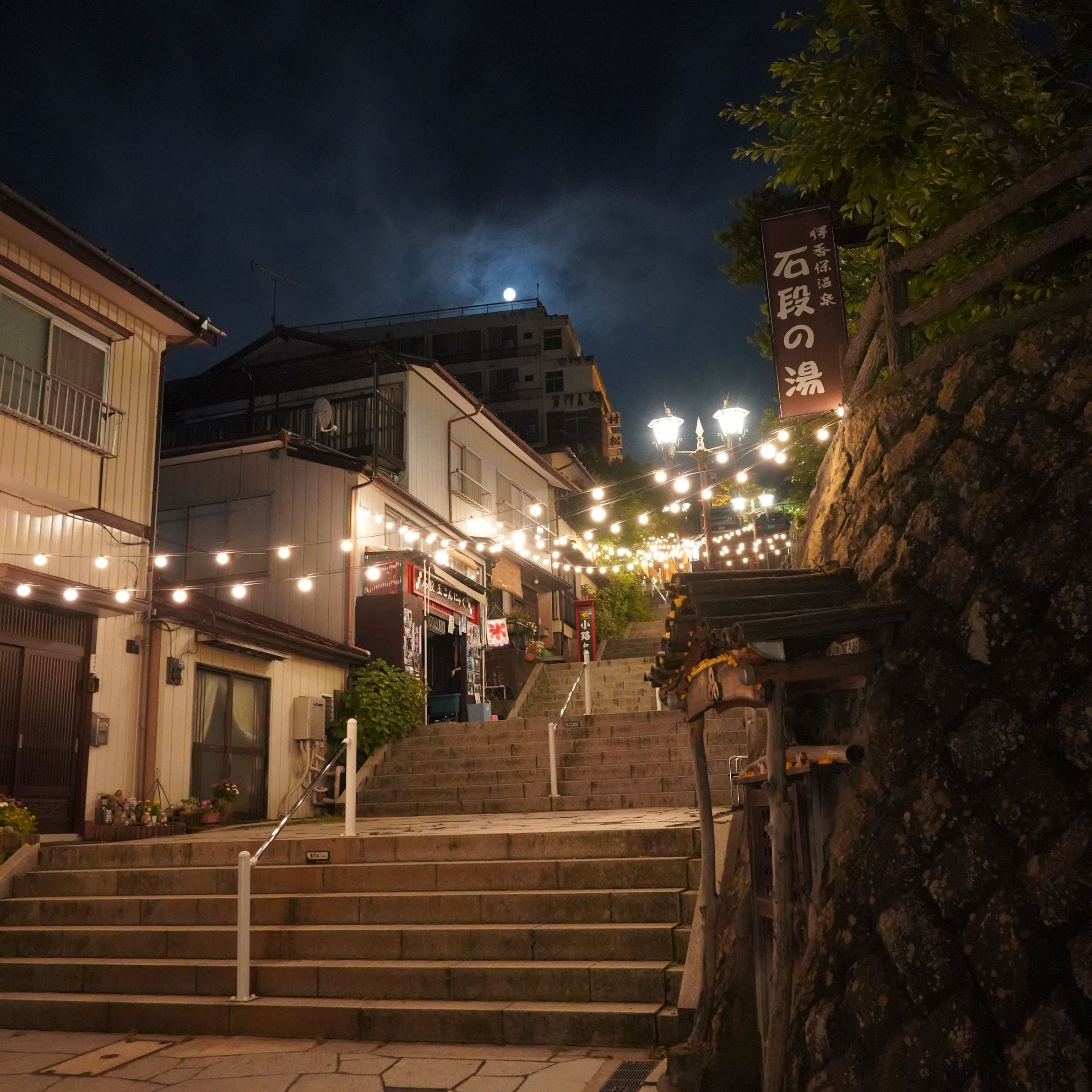 月明かりの下、石段の散策が気持ちいい