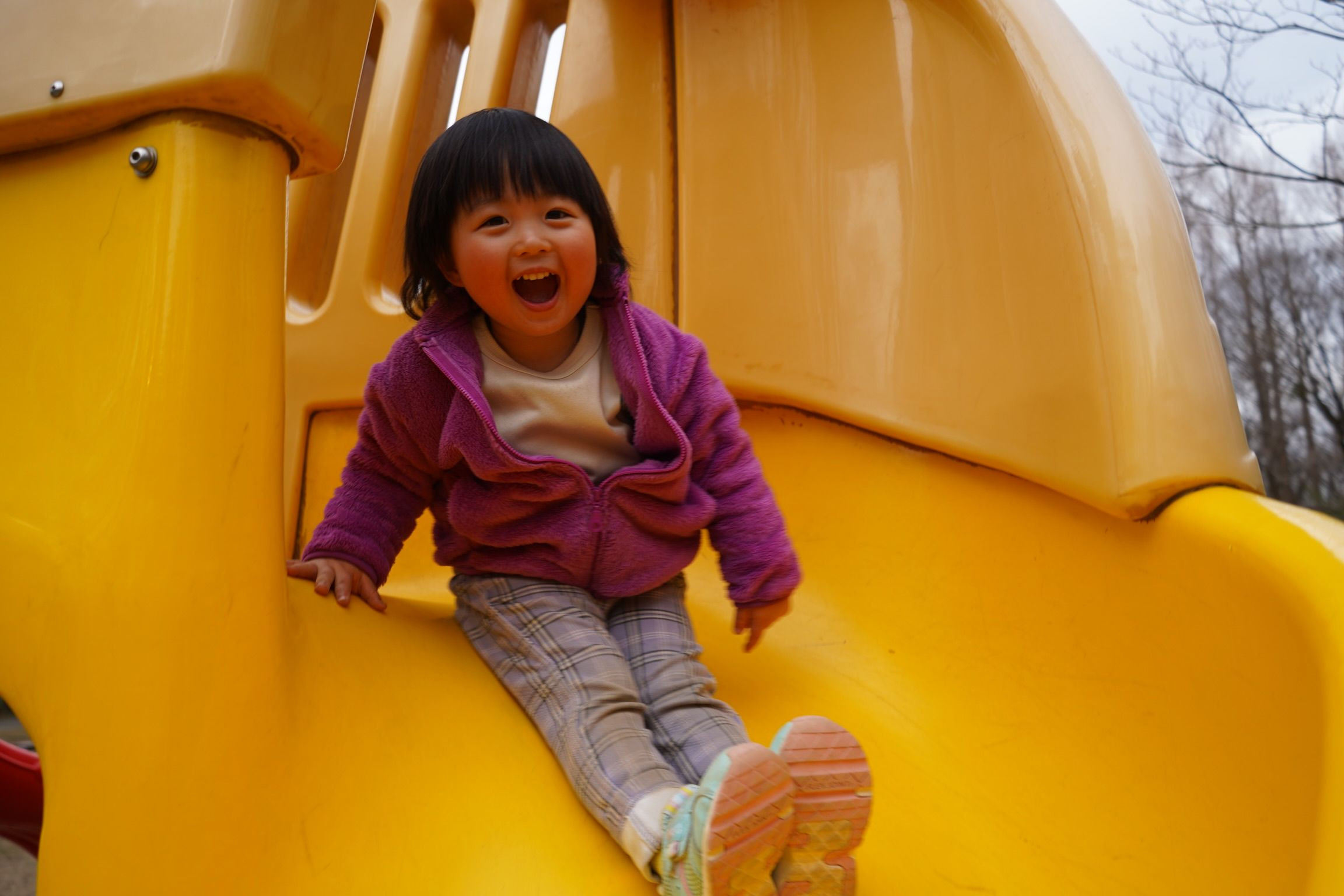 シュー!!!! 静電気すごいです!滑り台!