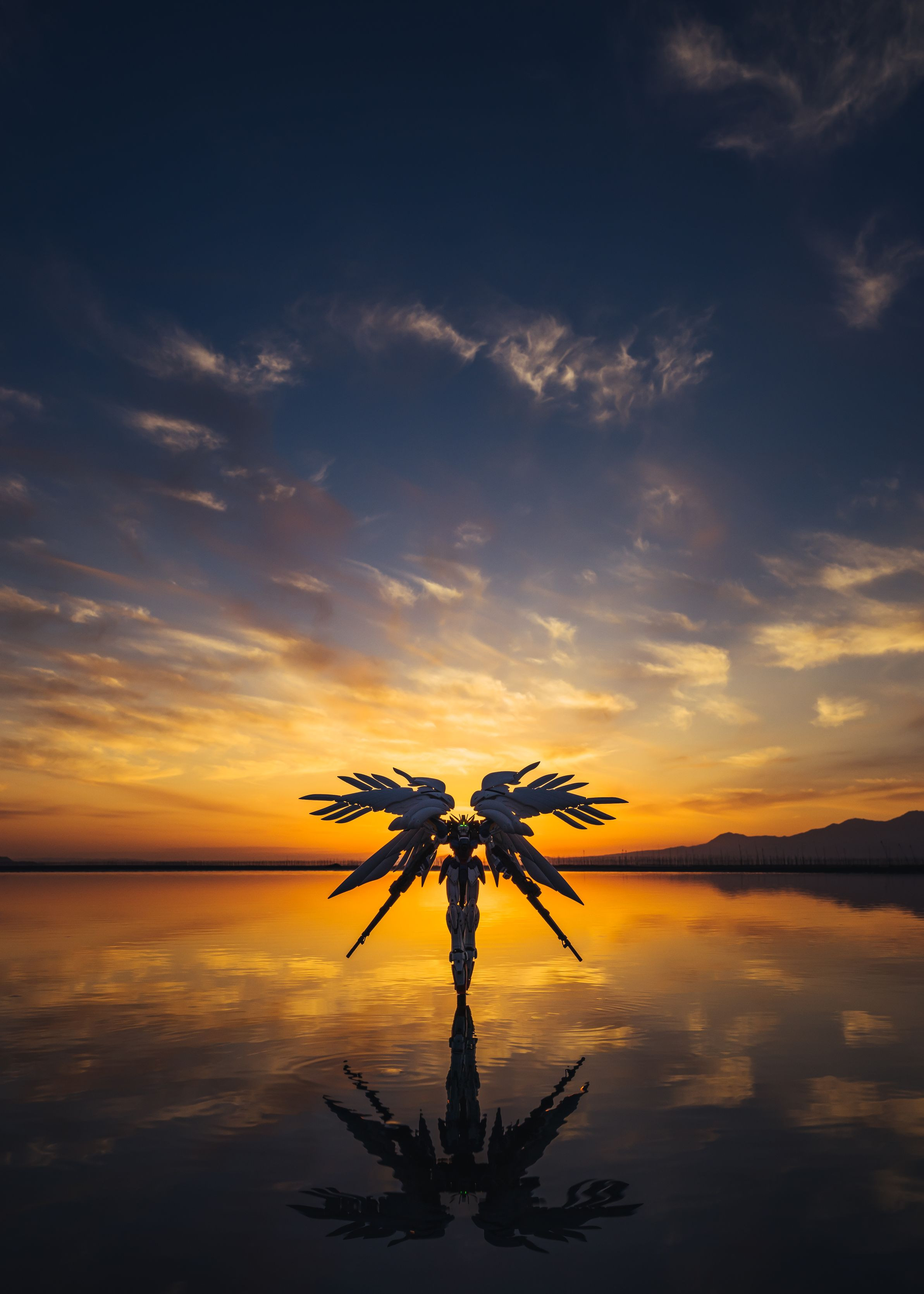 宇土市の干潟の無風時にガンプラを撮影したものです。