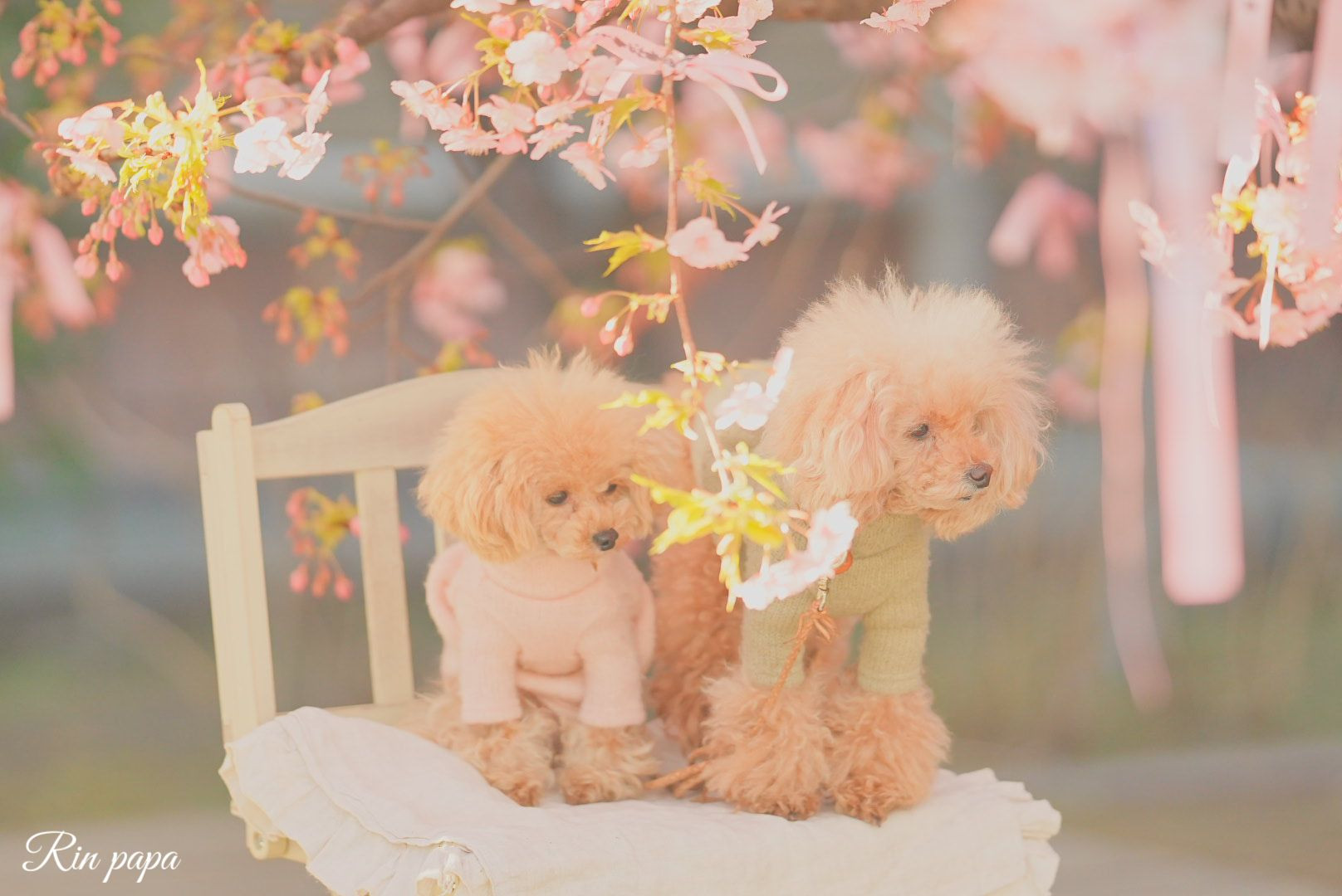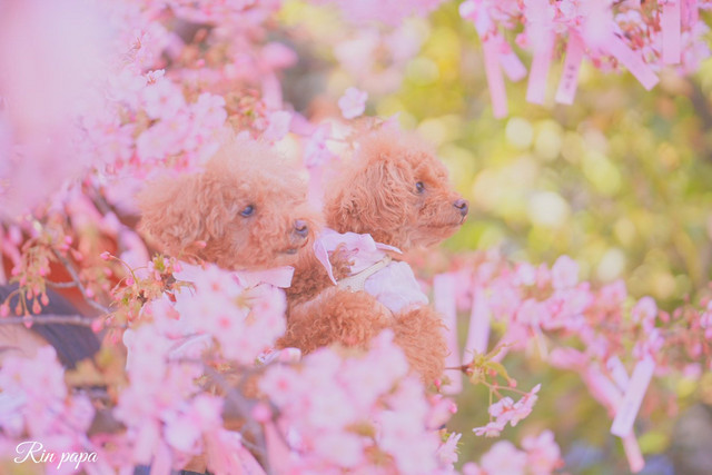 桜神宮にて綺麗な河津桜と可愛いワンちゃんを撮りました。