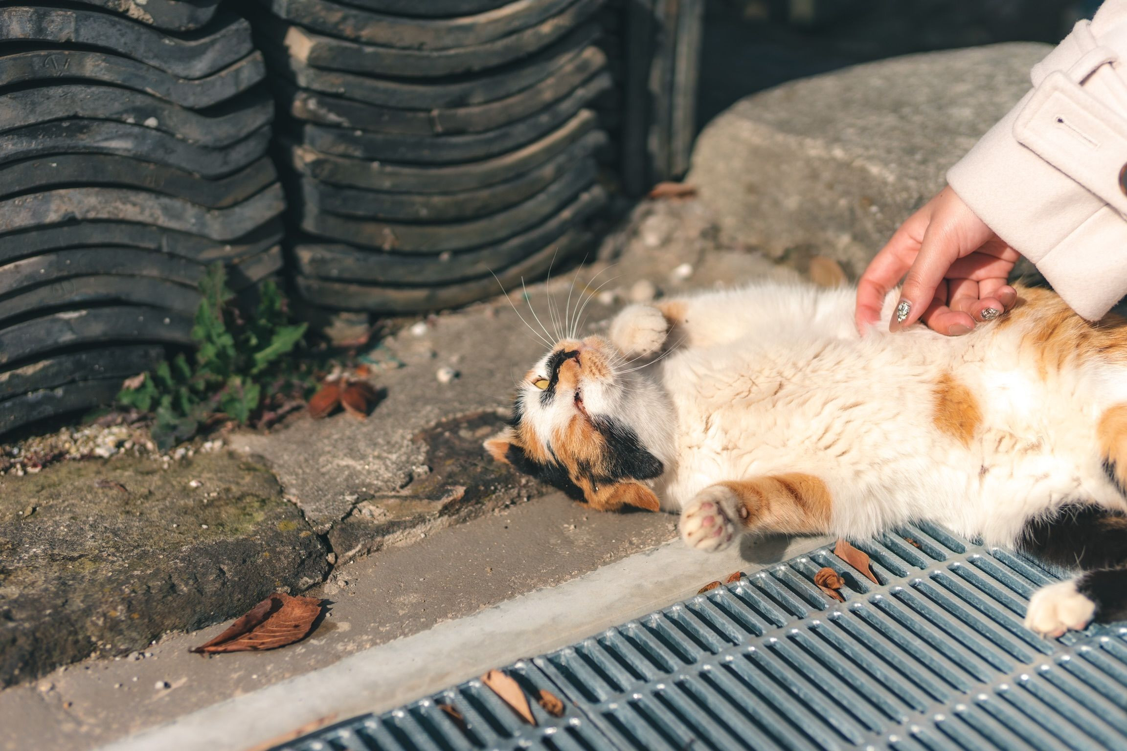 佐久島にいた猫です。 ちゅーるないのにお腹見せてくれました。チョロいです。