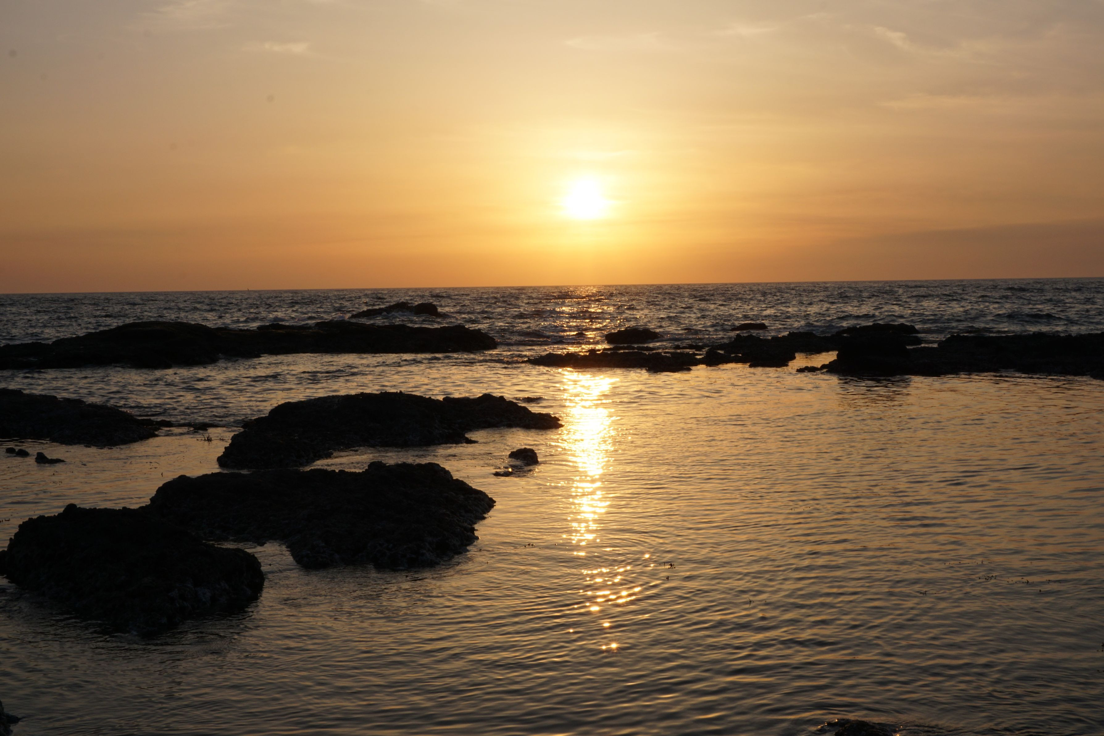 巌門夕景 のんびりと海に沈んでいく夕陽を眺めて過ごしました。