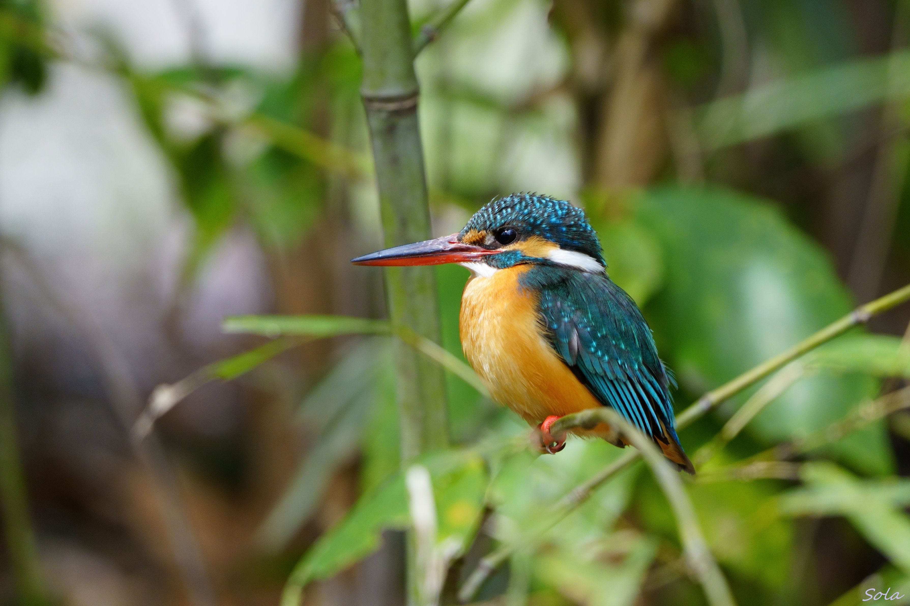 竹藪の中にポツンと居るカワセミのカワ子さん。