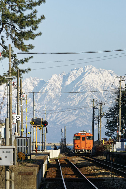 雨晴駅の駅近くの踏切から。