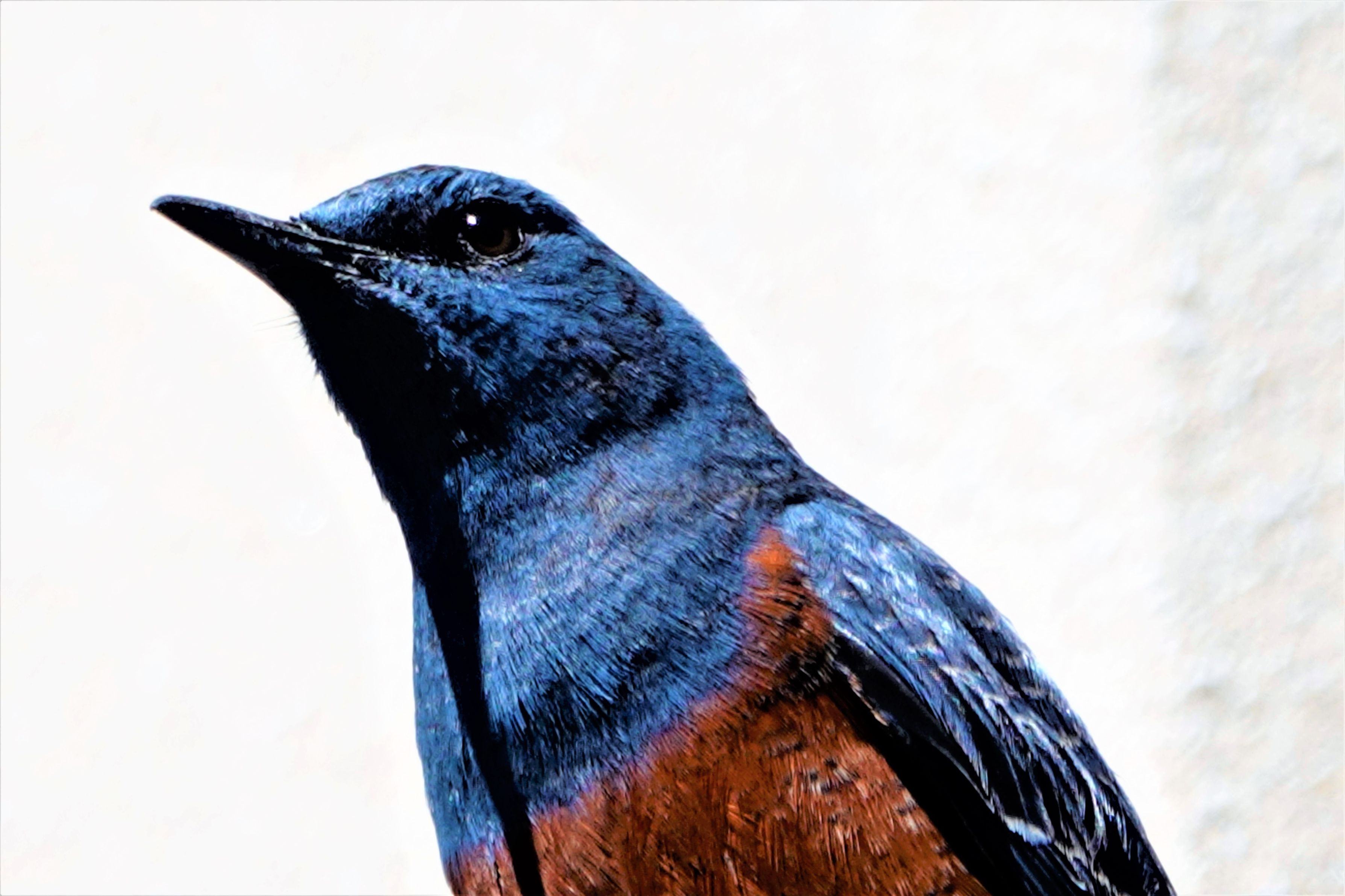突然屋根の上に飛んできたイソヒヨドリを撮って見ました。