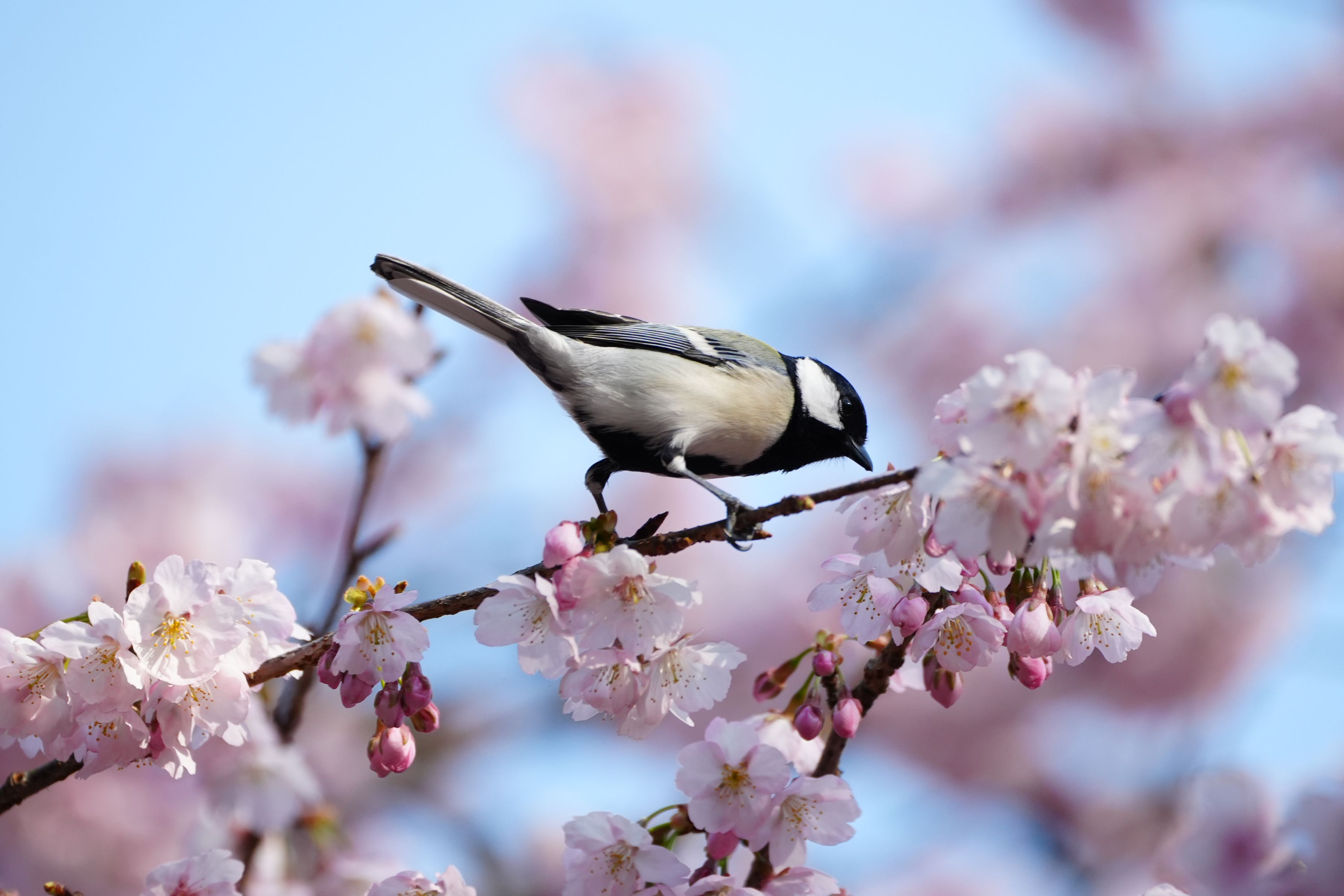 シジュウカラさんも寒桜となら絵になります🌸