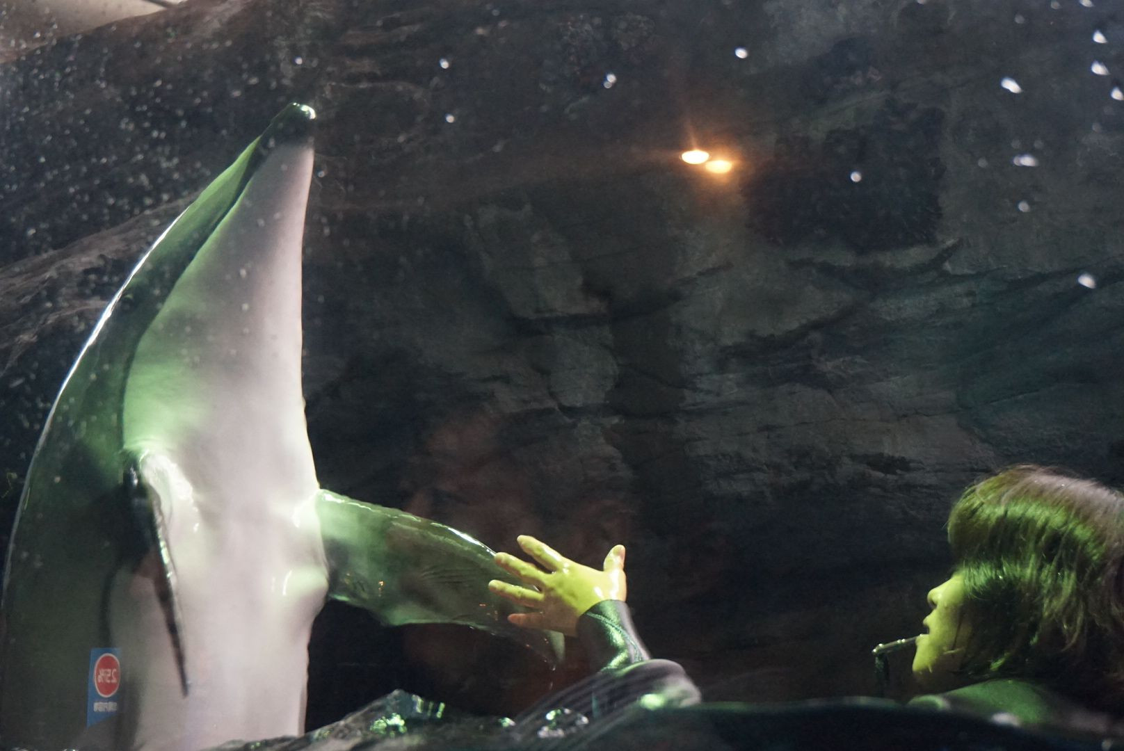 海遊館にて。大きな水槽で泳いでいるイルカちゃんがこちらにやって来た時に撮った写真。握手してるみたいに見えますよね😊