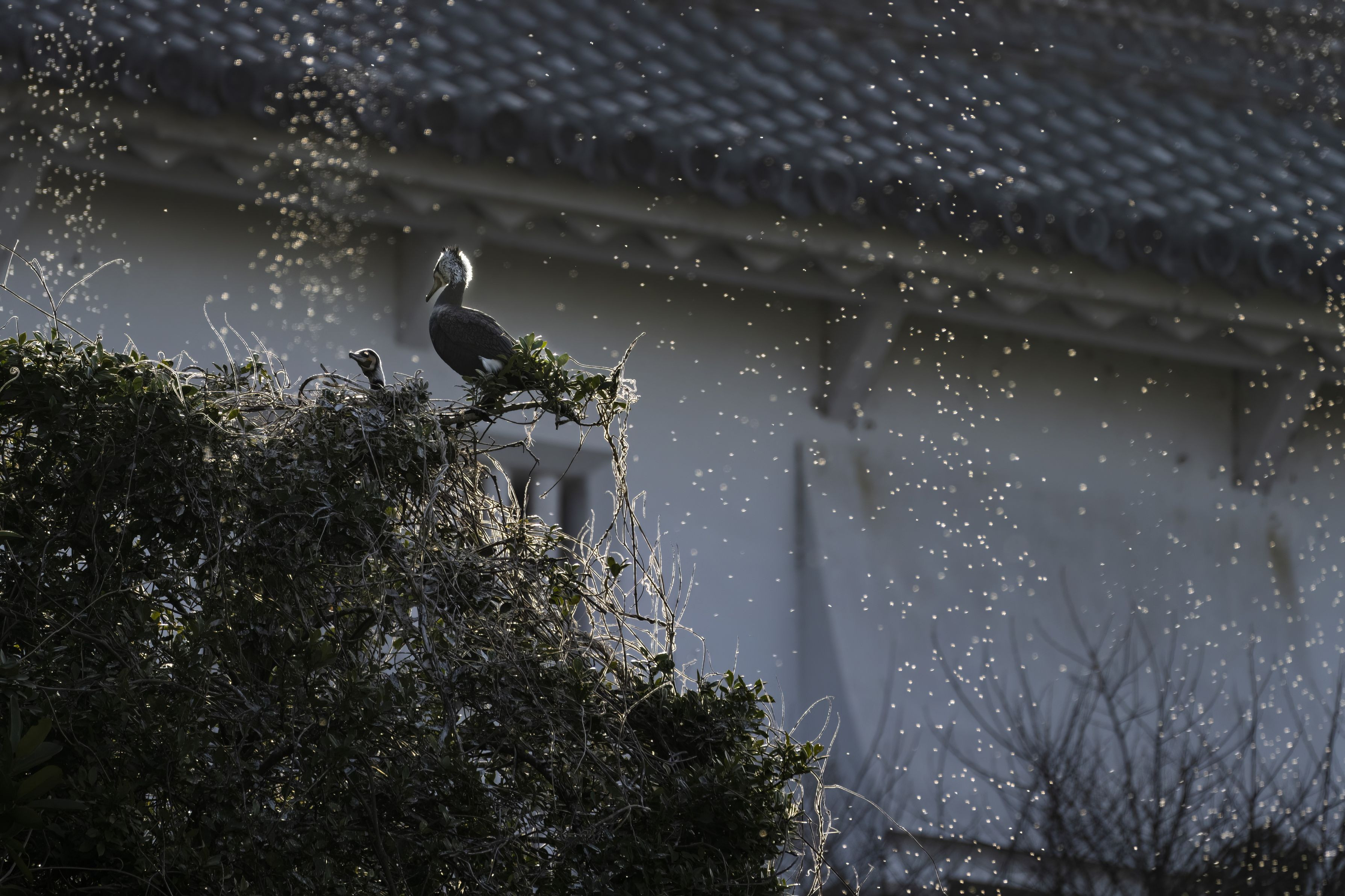 蚊柱だと思うのですが、立ち上る気泡の様で気に入りました。 #カワウ#