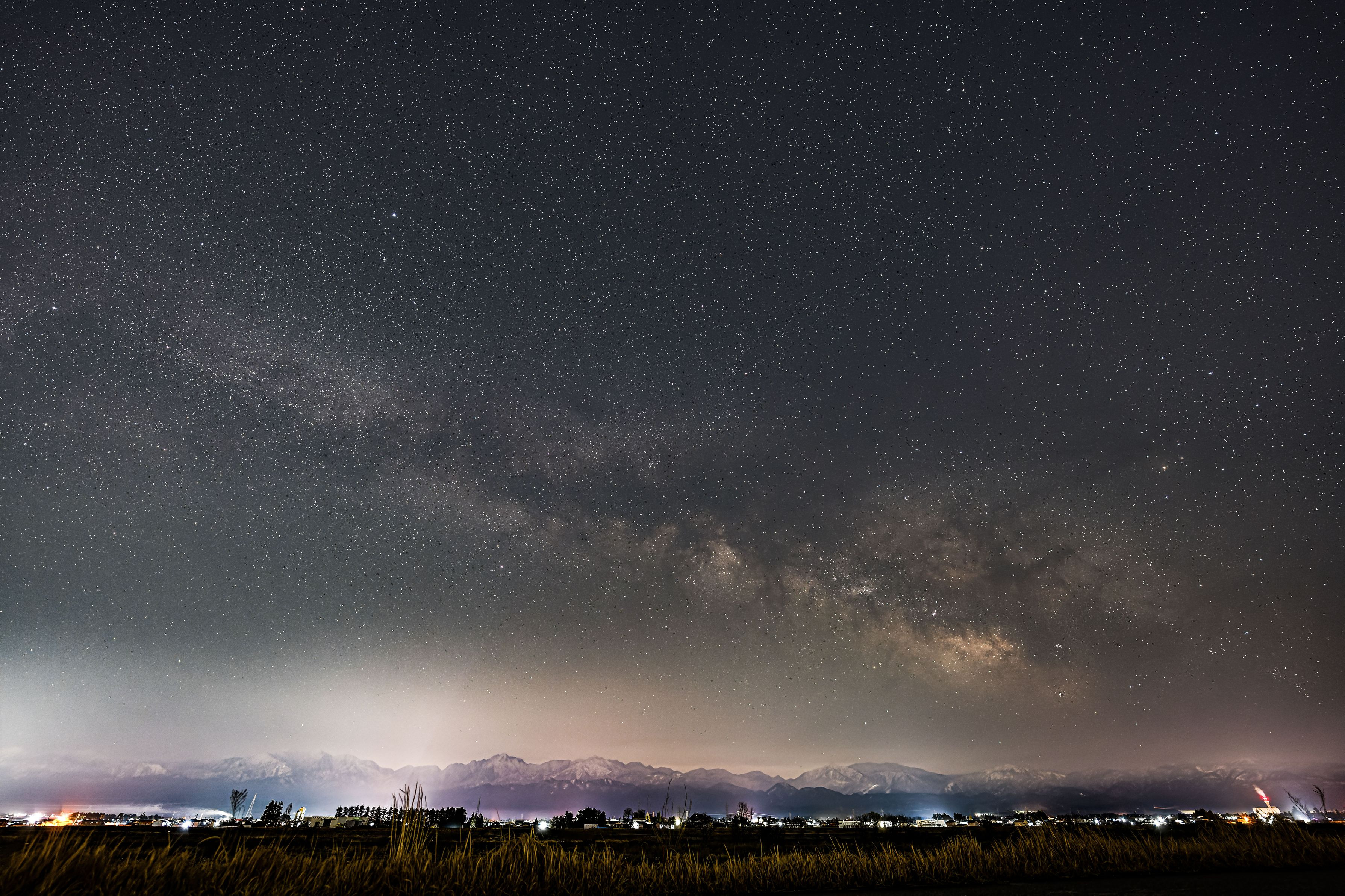 遅ればせながら春の天の川を撮影しました。春先限定、立山連峰越しの星空です。