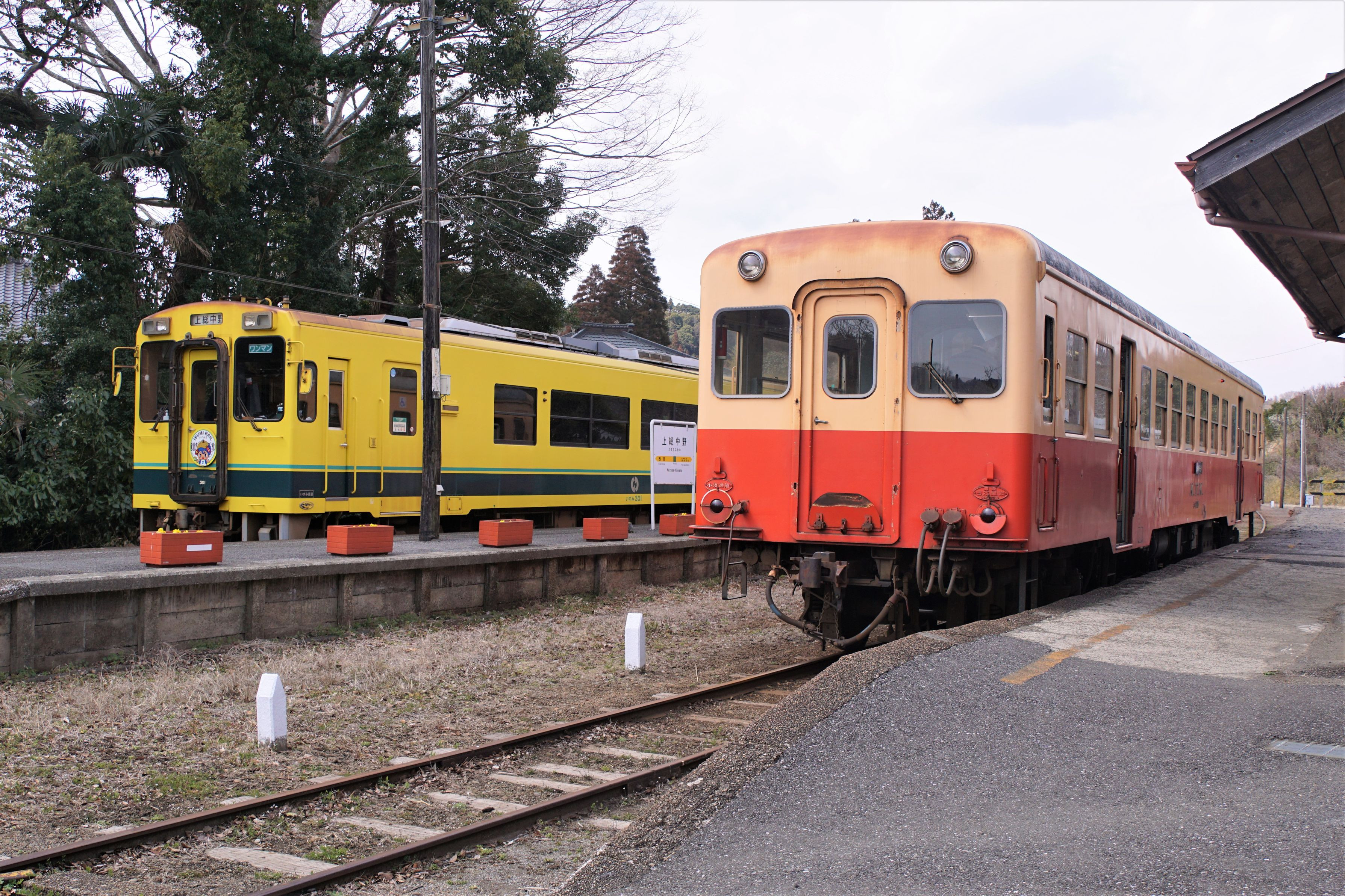 相互乗入する小湊鉄道といすみ鉄道の列車が同時に停車。上総中野駅にて。 #小湊鉄道# #いすみ鉄道#