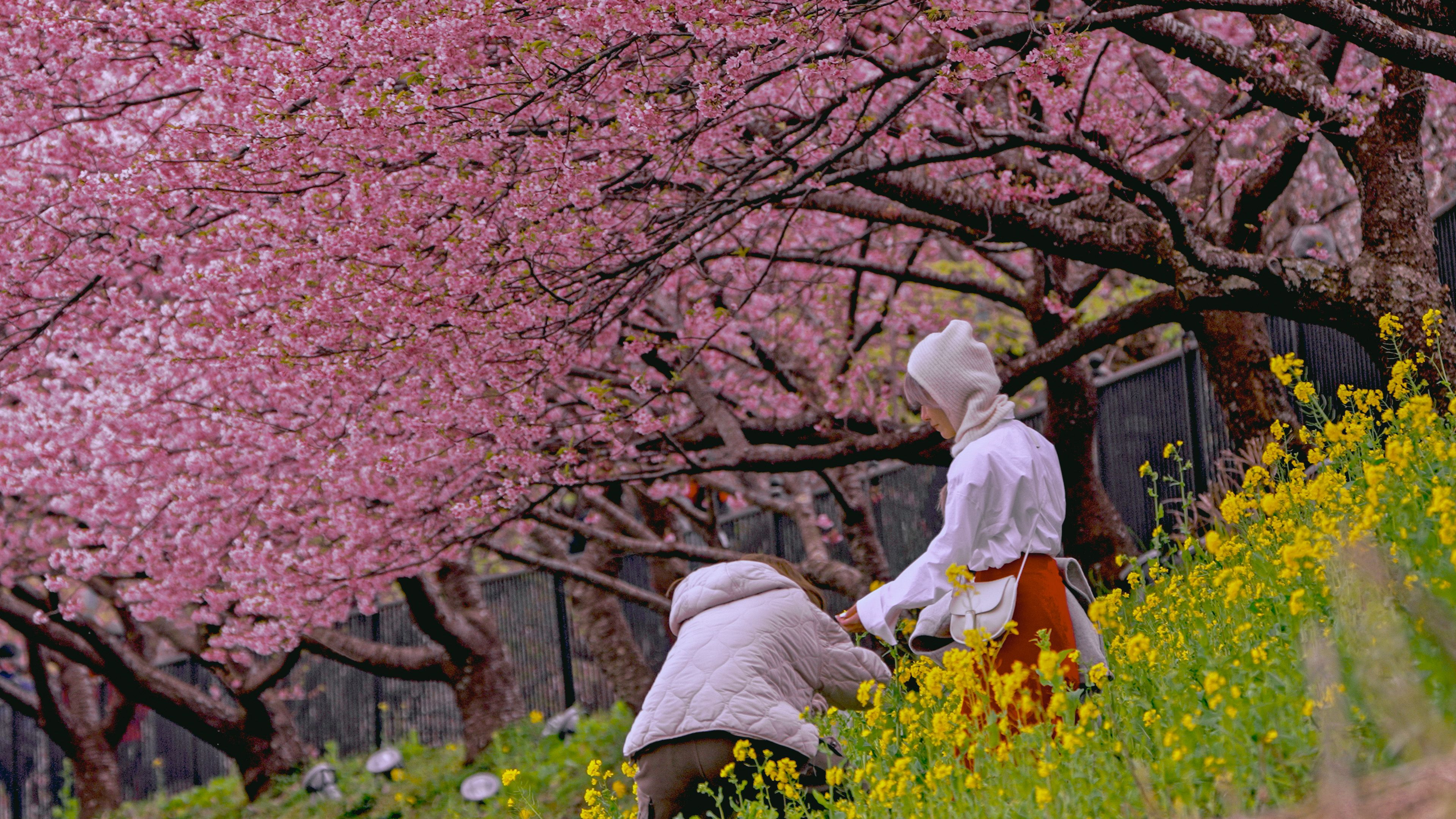 望遠レンズの先に二人の少女を見つけた。 腰をかがめ、花を接写しているようだ。 何かメルヘンチックな風景に見えてきた。