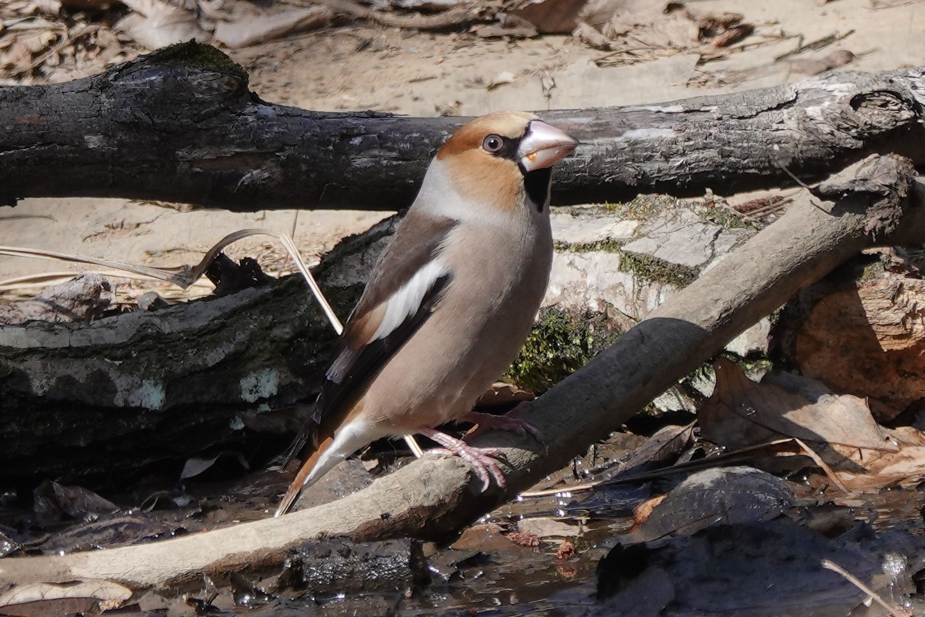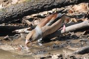 森の中の水飲み場にシメさんがやって来ました。喉が渇いたのかな よく見ると綺麗な鳥さんですね。