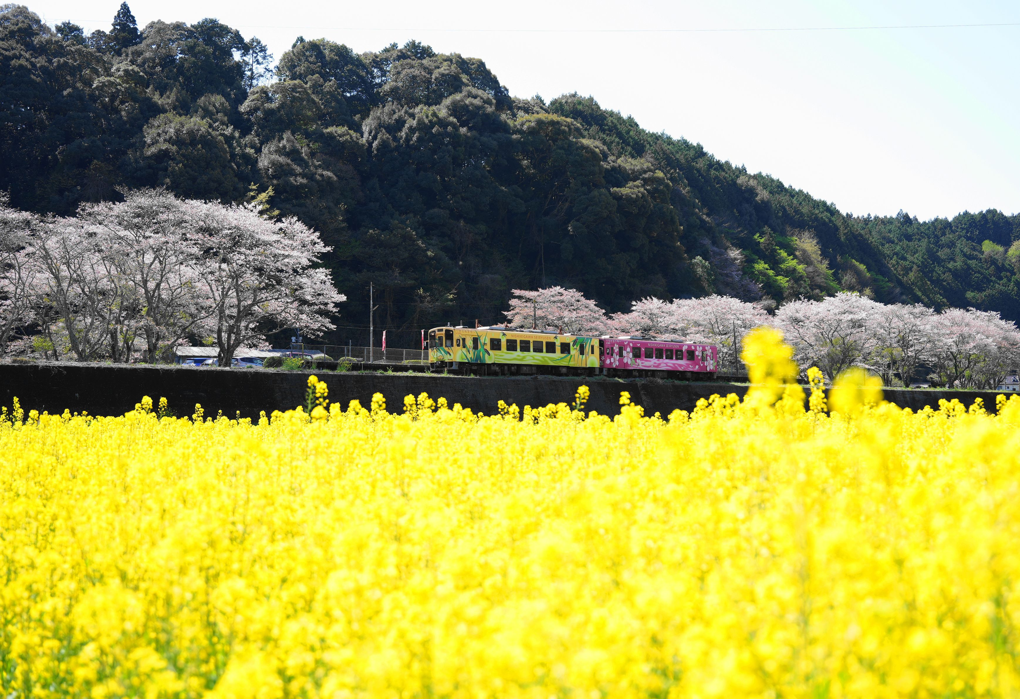 菜の花元気でさくら散りゆく #フラワー2025# #錦川鉄道#