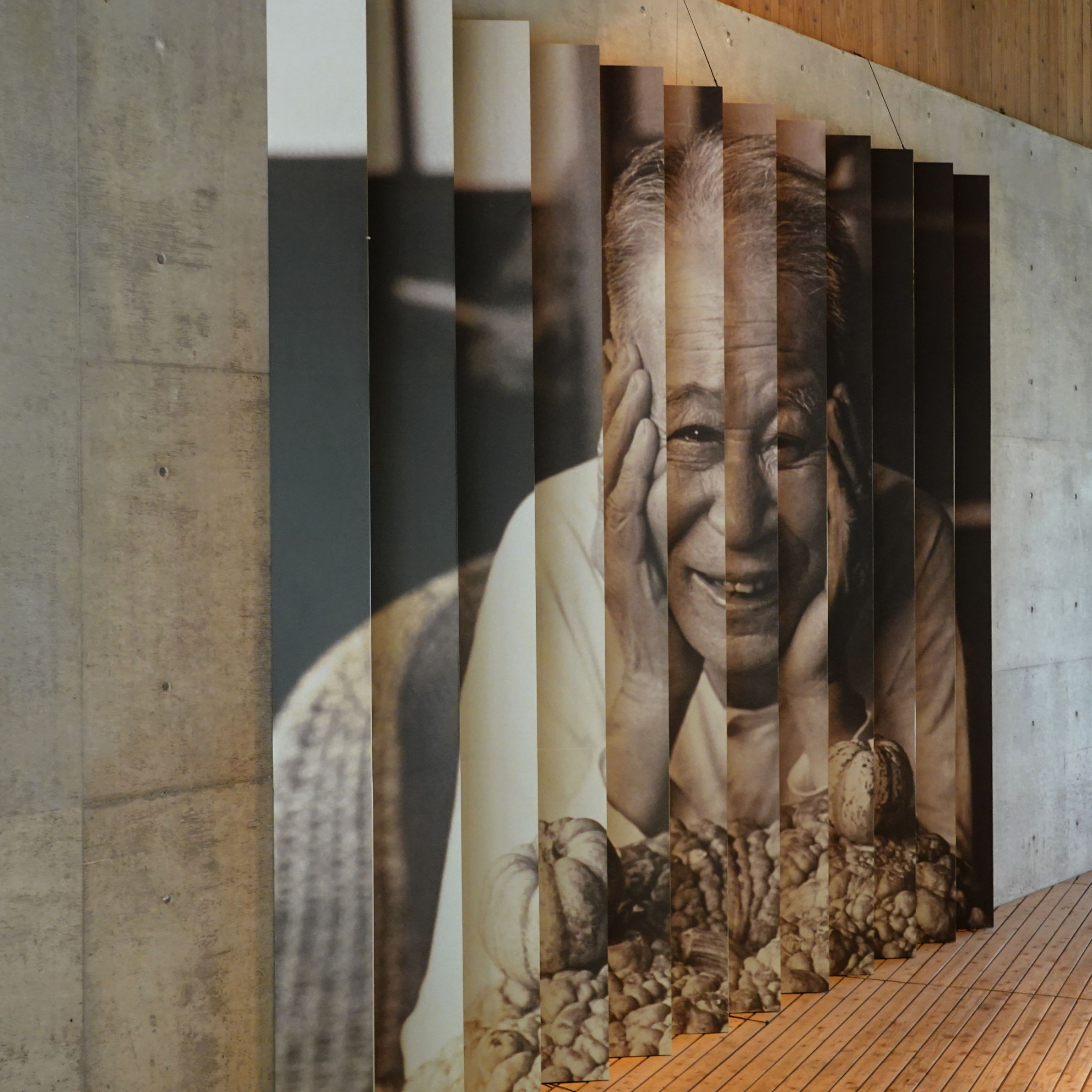 2022/10 高知県立牧野植物園にて。記念館導入部通路にあったものです。行きと帰りで違う表情が見られるデザインです。