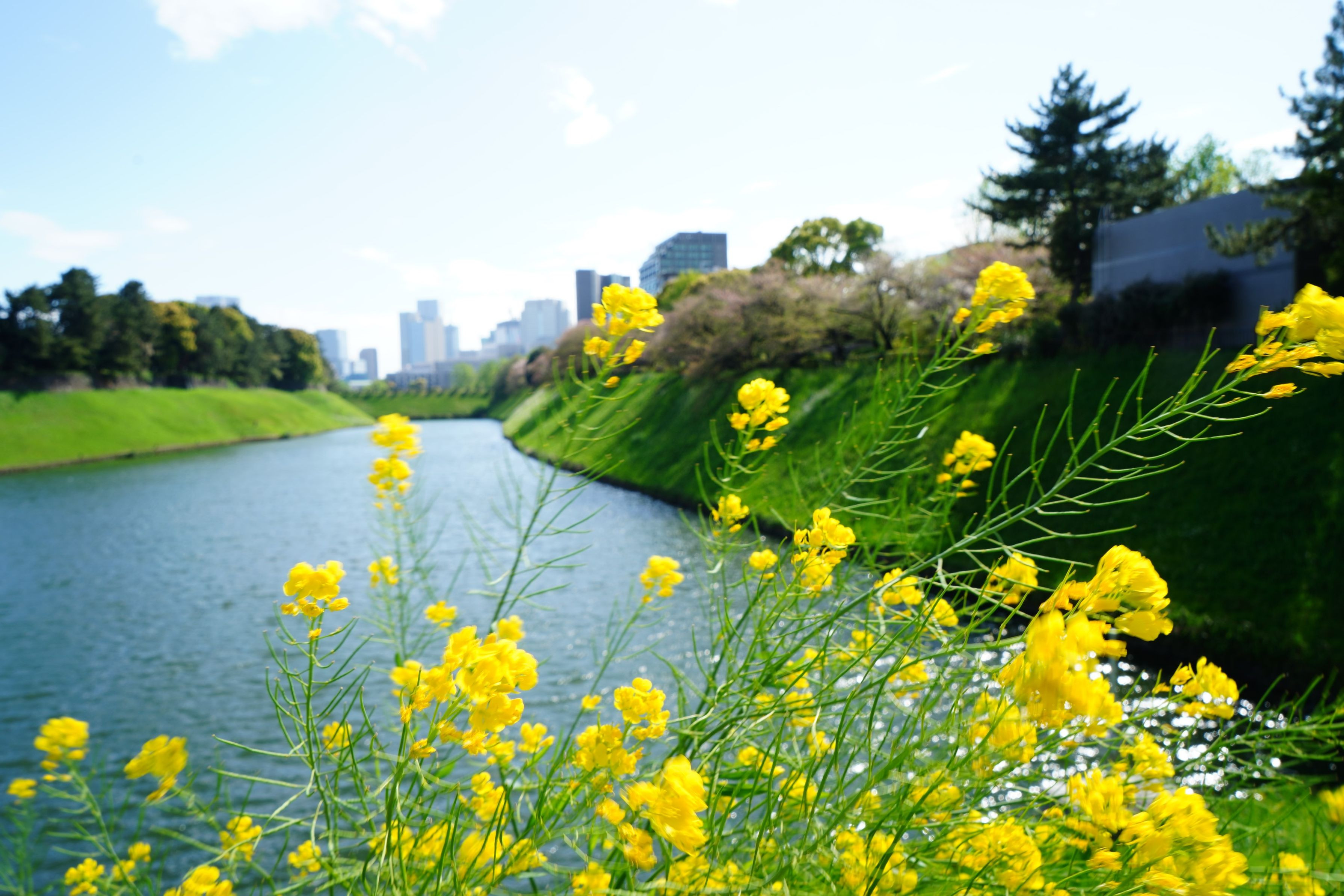 αアカデミーの撮影実習で行ってきました。今年は既に染井吉野は終わっていましたが、春の光を浴びてお堀の水がきらめいていました。