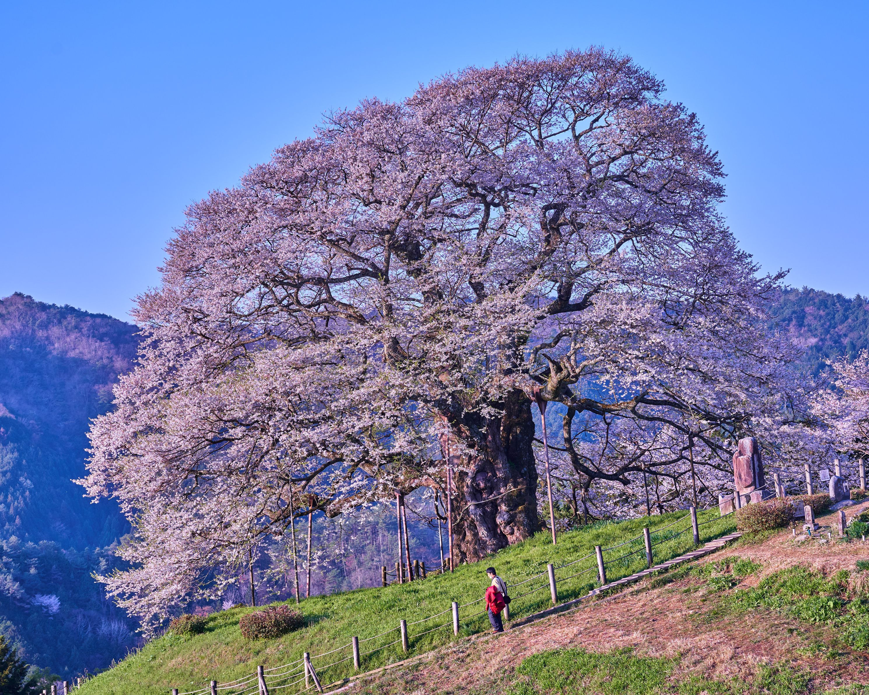 岡山県真庭市にある醍醐桜 樹齢1000年とも言われている一本桜です! 写真を見てスケールの大きさが分かると思います。 ずっと守っていきたい景色です。