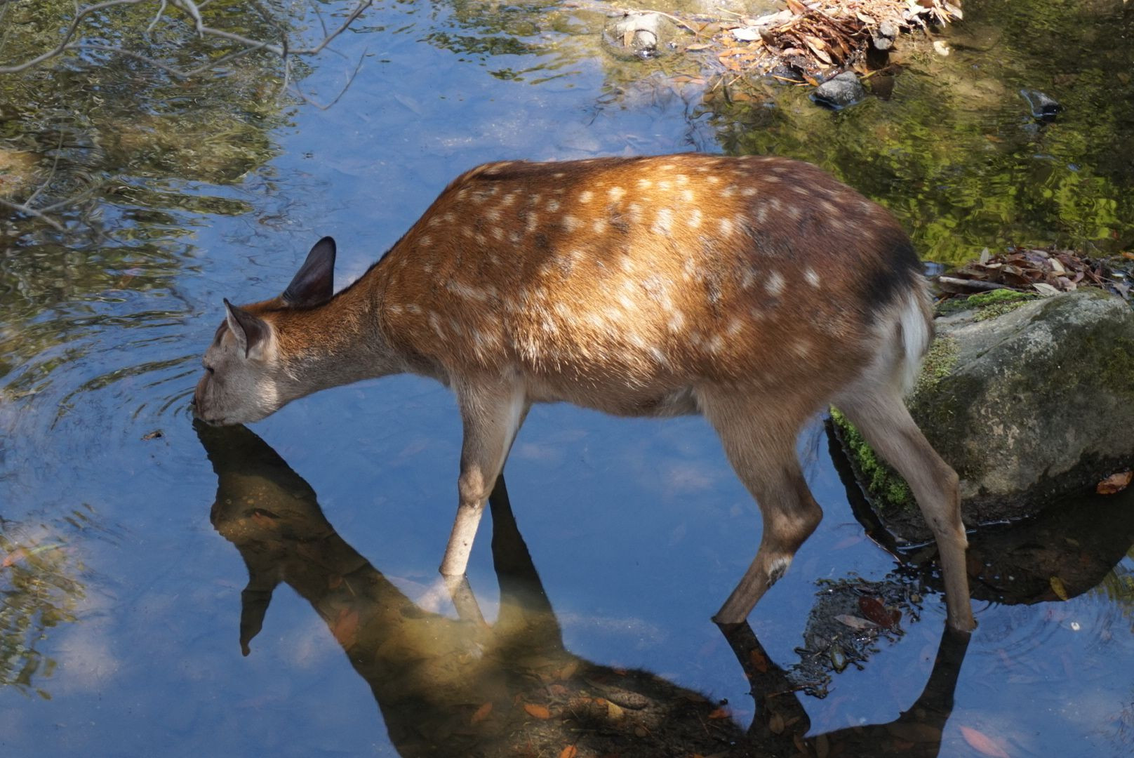 鹿が水を飲んでいる場面。水面に写った顔が美しいですよね♡ #CHOICE チャレンジ 2024#