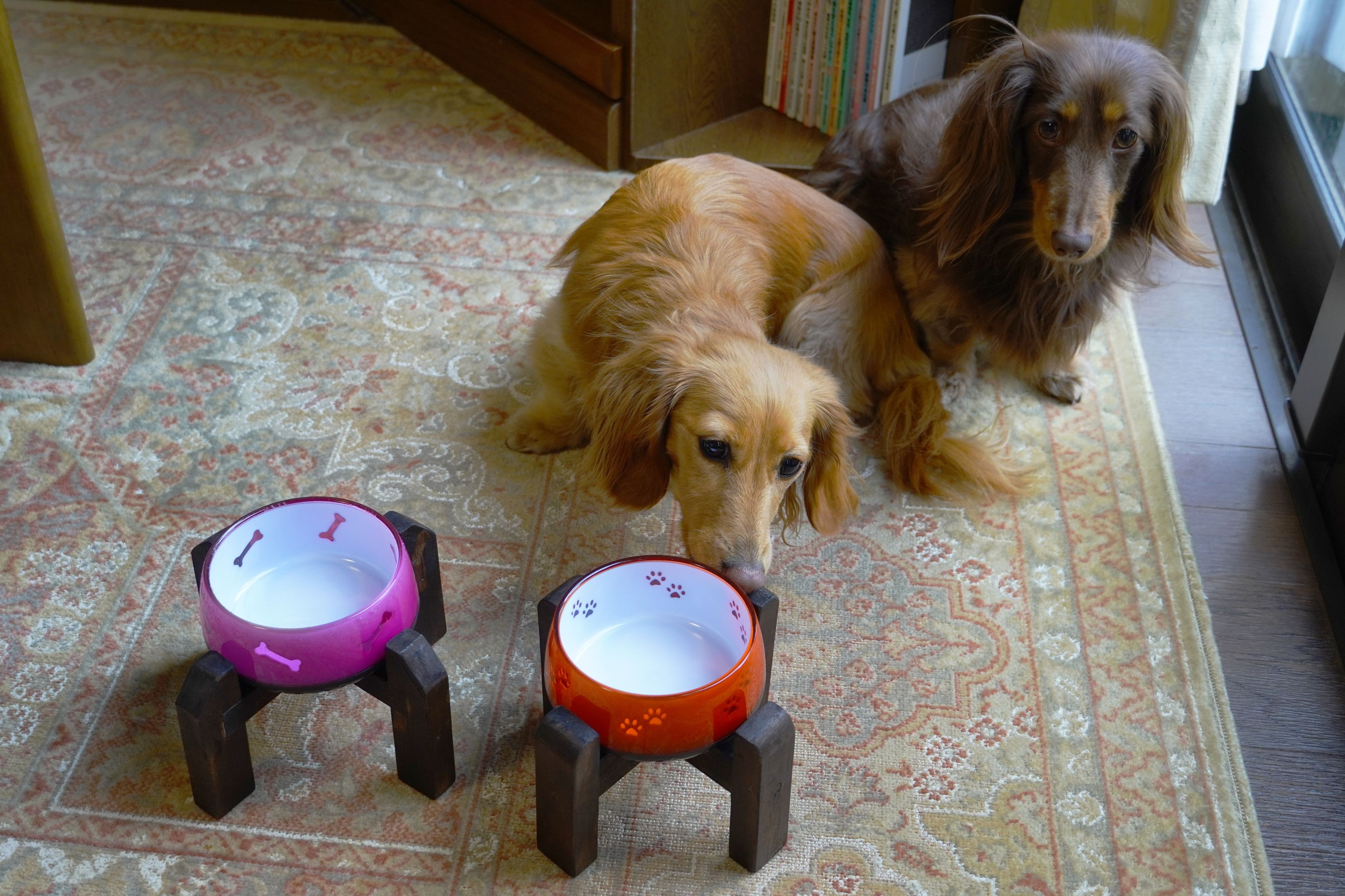 雨の週末は他にすることもなく、日曜大工で愛犬たちのエサ皿台を作った。足の短いダックスなので、これまで直置きでも特に問題はなかったが、少し食べやすくなるかな。