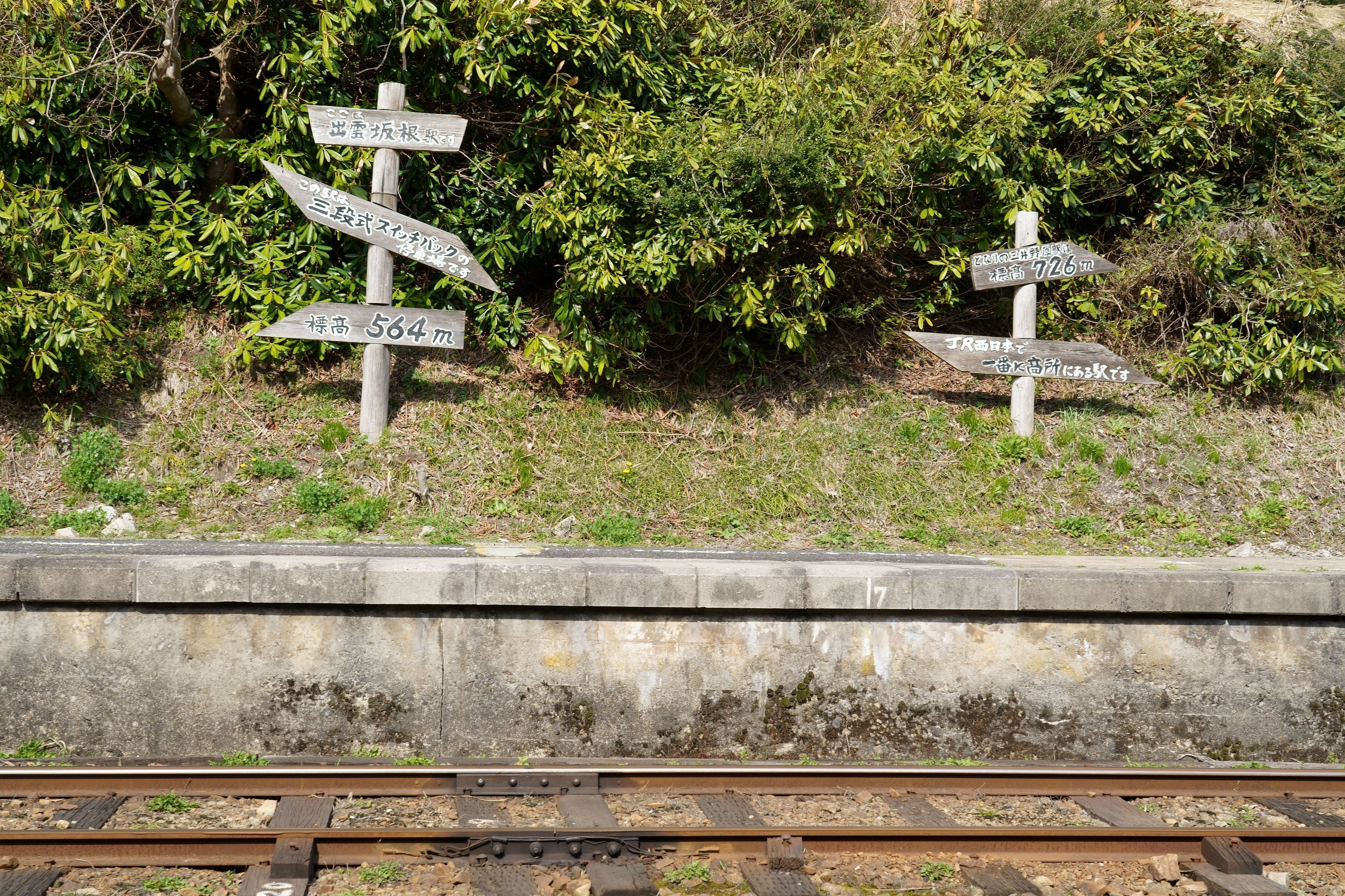 島根県の出雲坂根駅。標高差160メートルを三段式スイッチバックで中国山地を越えていきます。