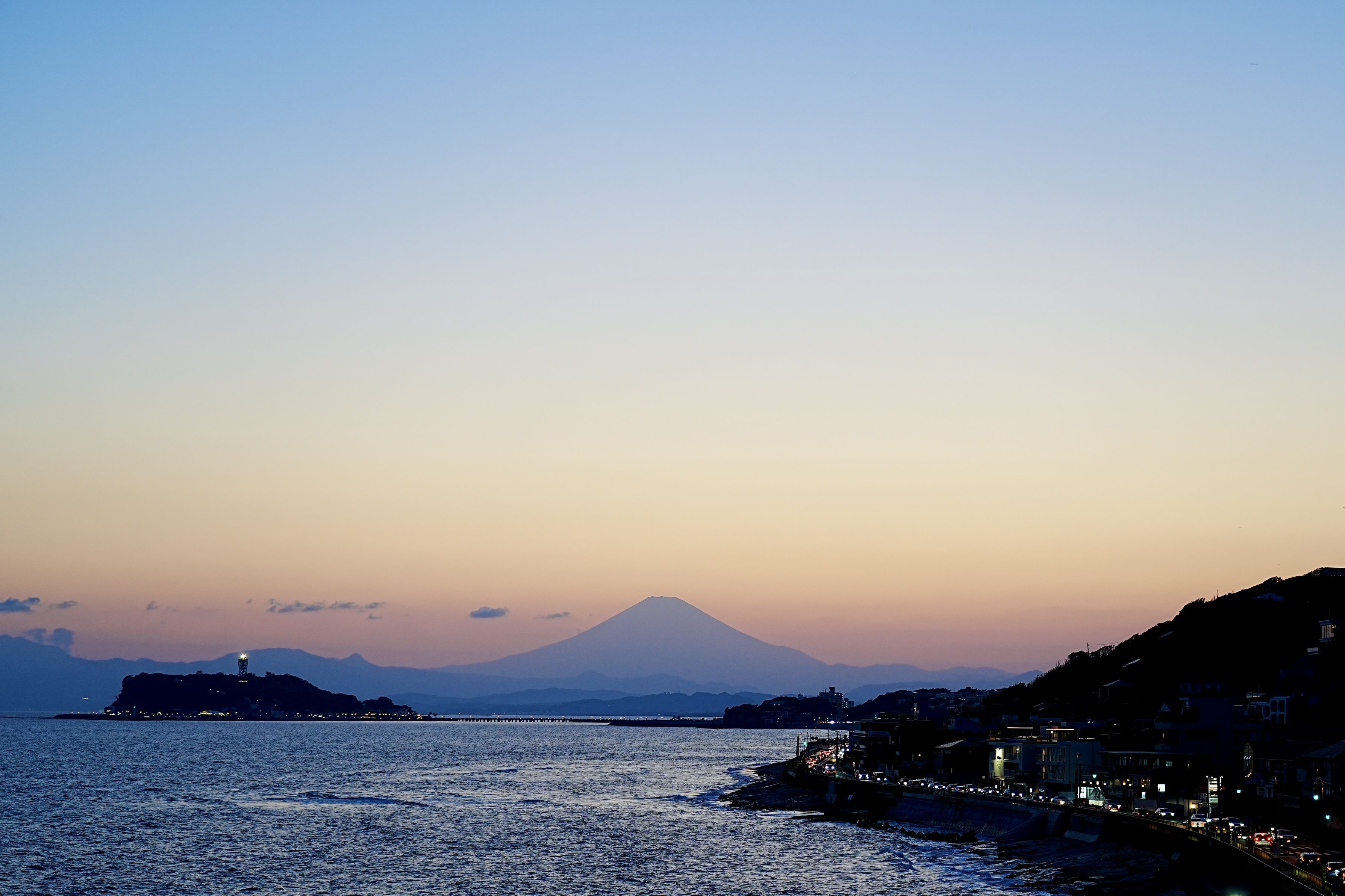 日没後で富士山の姿も綺麗に見えていました。