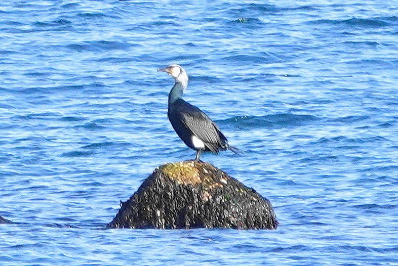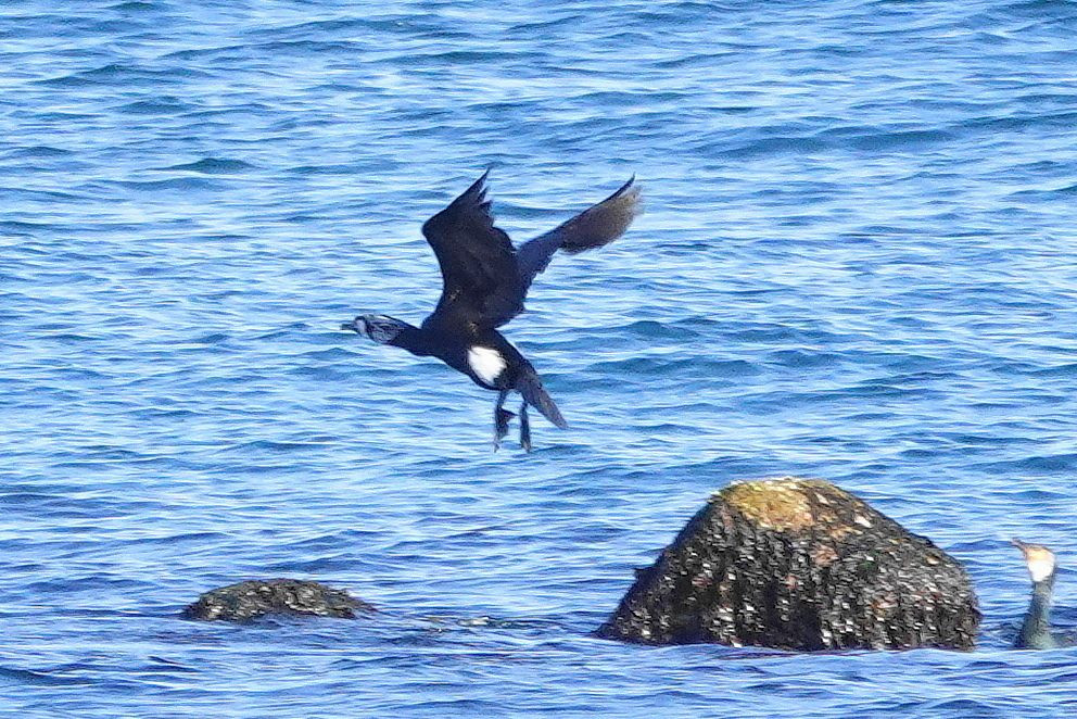 カワウの婚姻色でしょうか、顔やお腹に大きな白斑が左右対称的にある鵜が数羽いました。